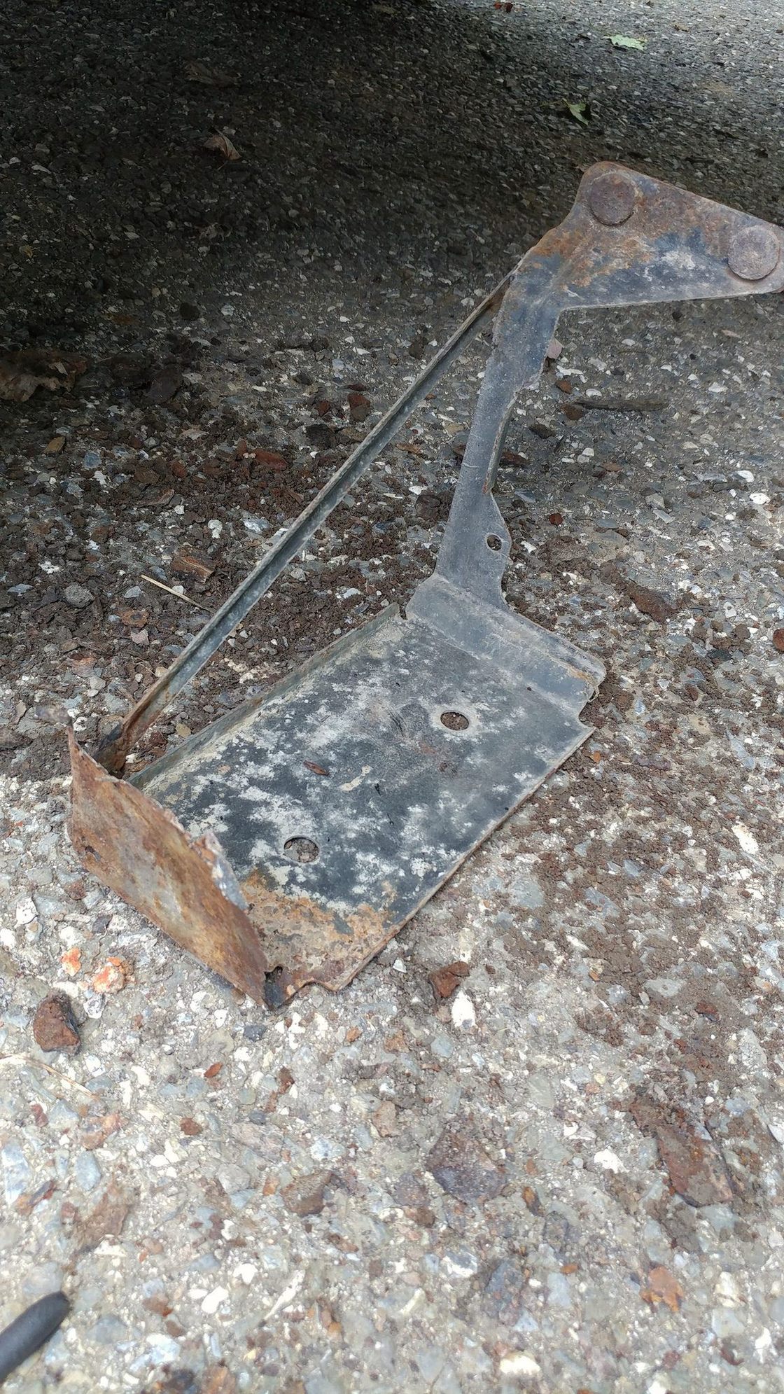 Since i had it out, I found and old heat shield and flattened it out to make a piece to weld onto the canister bracket. My dad had some blue engine paint sitting around so I painted it because I could. I tried to get pictures but my flash got turned on and most of them are too washed out. I didn't feel like taking the bumper end back off just for pictures.