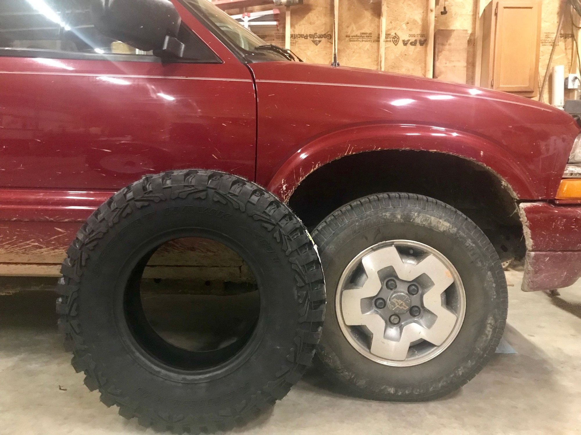 New member, looking forward to start my build. Already finding lots of great info on here. I just bought a 2002 4 door Blazer with only 82,000 miles. Already acquired the nickname “Mini 5”. Plan to make a solid hunting/woods truck out of it. First order of business is to get a decent set of shoes under it. I picked up some 30x9.5r15 Achilles Desert Hawk MT tires. In the process of building 1.5” rear lift shackles and gonna crank the Tbars up front to provide 1.5”. Hopefully the new tires will fit no problem. More of a difference between the stock tires and the new 30” tires than I thought I’ll post some pics once I get tire and lift install complete.