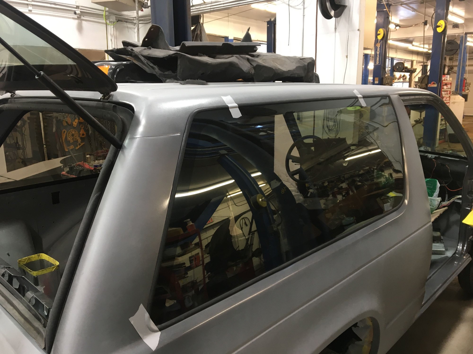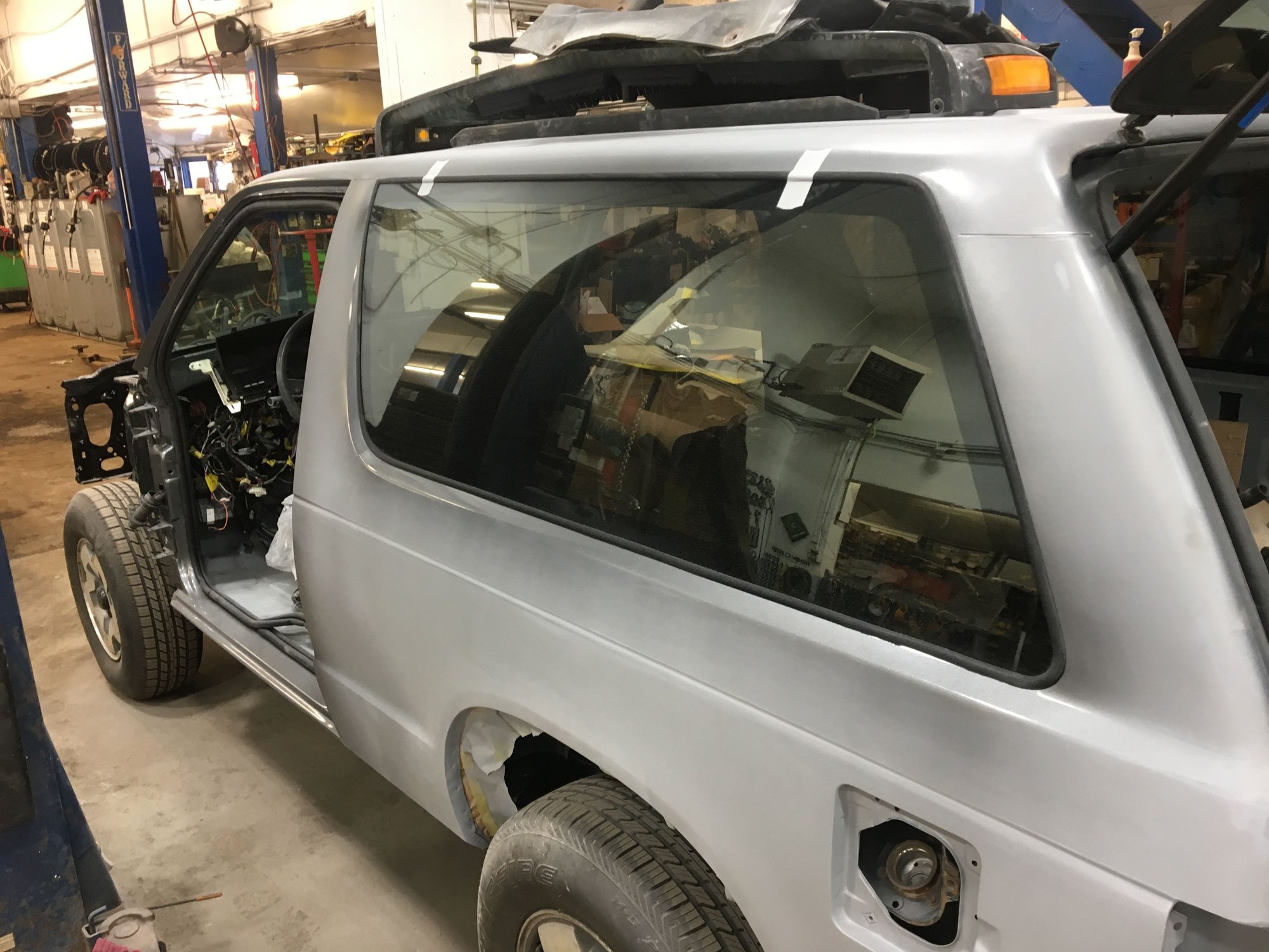 The glass is back in. I'm swapping the power window regulator and all those guts from my old doors into the new doors tomorrow and reinstalling the doors. The fenders are painted along with the hood.