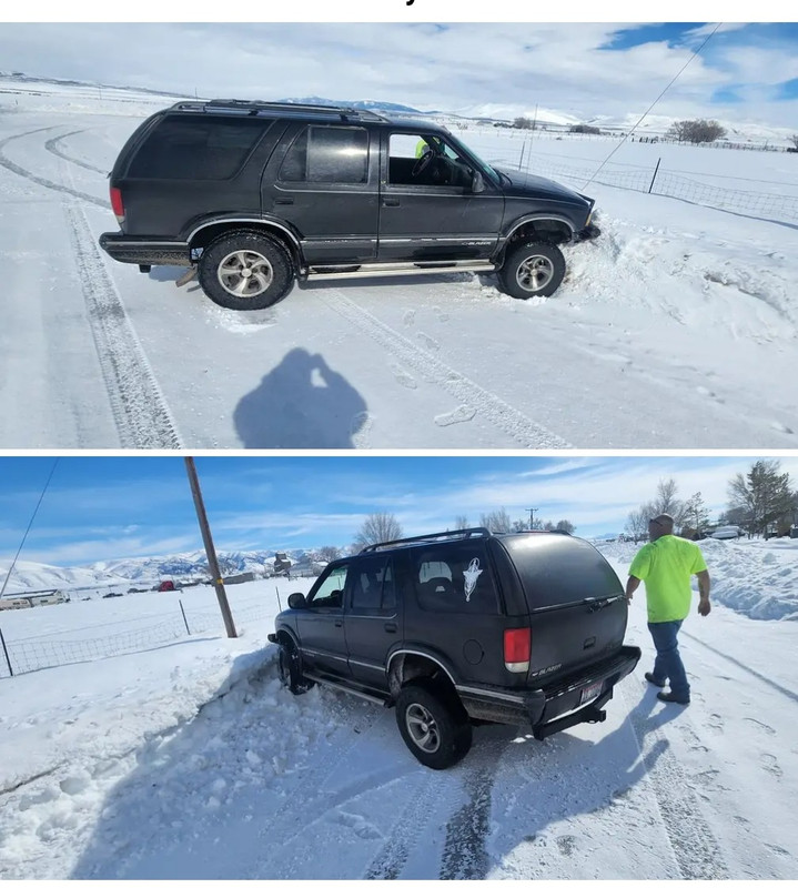 Well we put her through a hell of a test tonight! It passed with flying colors! We were out hunting and the wife said let's see where this road goes... ended up driving down an almost vertical 1/2 mile stretch of mountain road covered in baseball size rocks. That wasn't bad. The bad part was when we hit a locked gate and had to turn around and go back up in the dark. I wasn't sure we were going to make it back up but the blazer bounced and spun and some how found traction. It clawed its way out and got us home safe and sound.