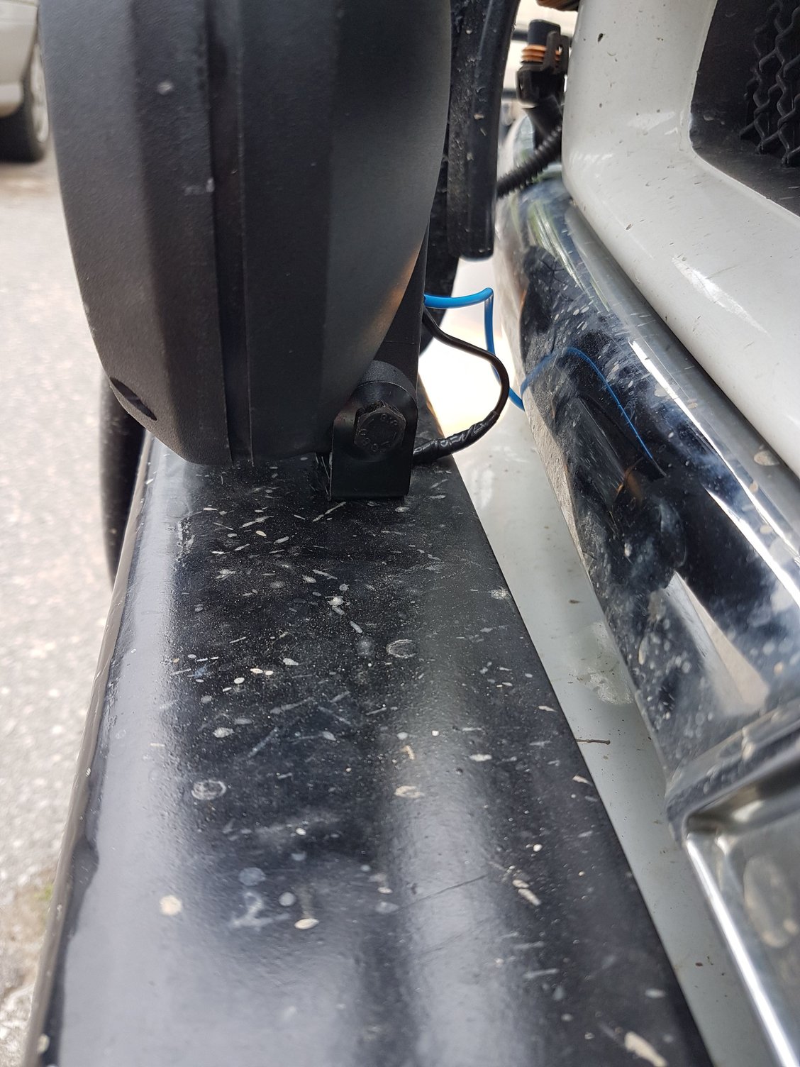 All I did was hook up the positive of my new light to the factory harness, then put the ground of the new light to the brush guard.