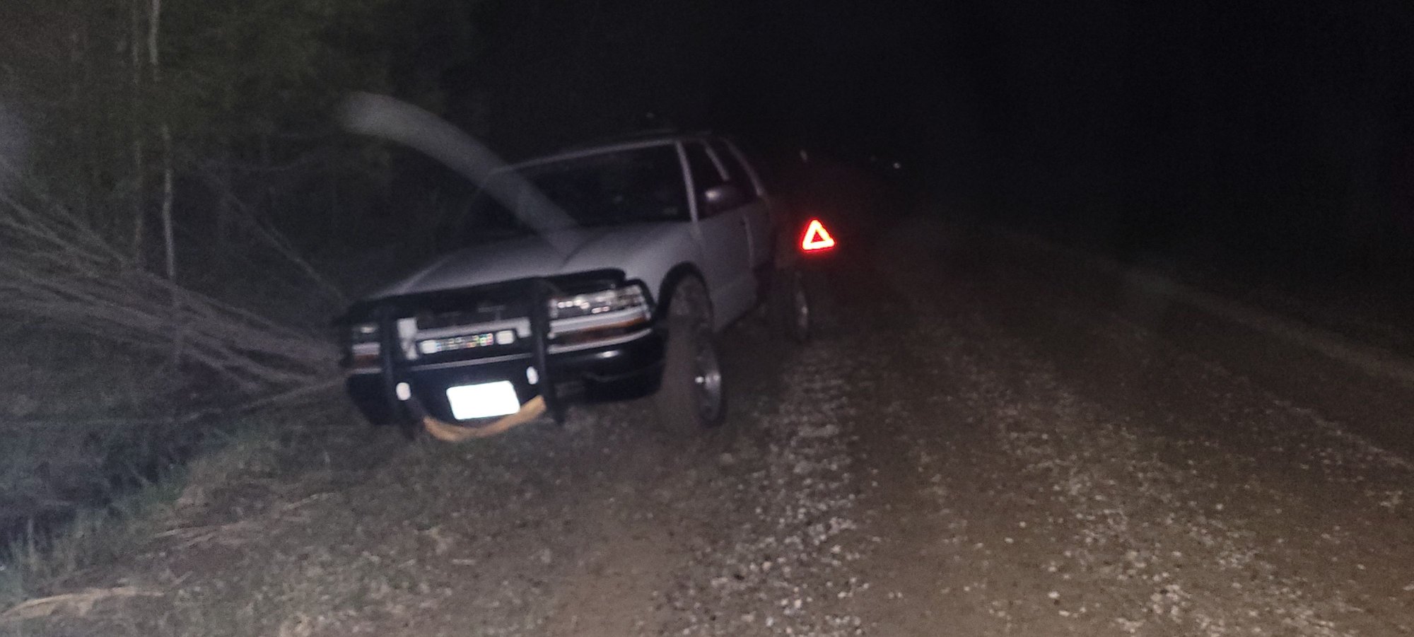 Went for a drive last night, pulled over to take a leak,pulled over too far lol... had to get pulled out... Front passenger side was hung up on the dirt and tire sank... Rear passenger sank and axle got burried a lil...