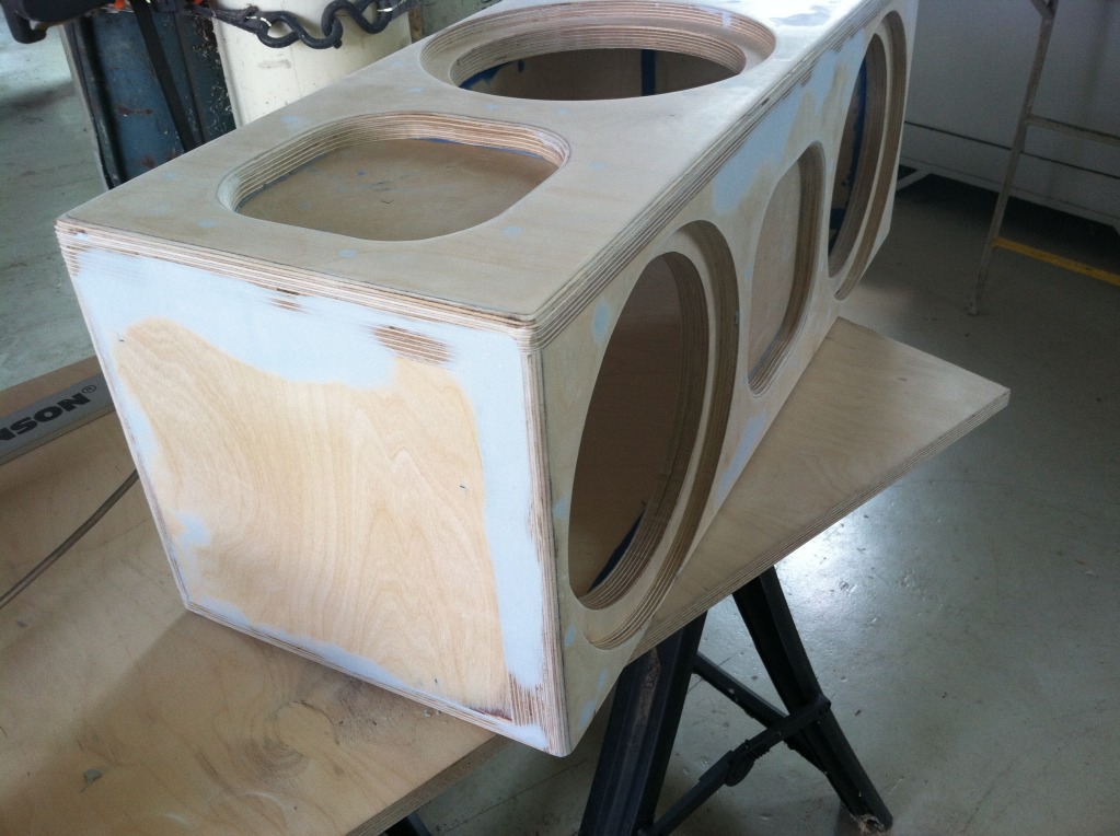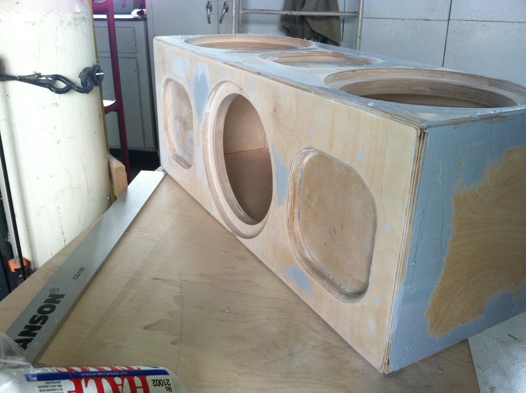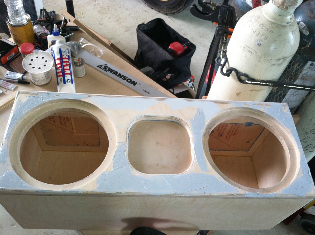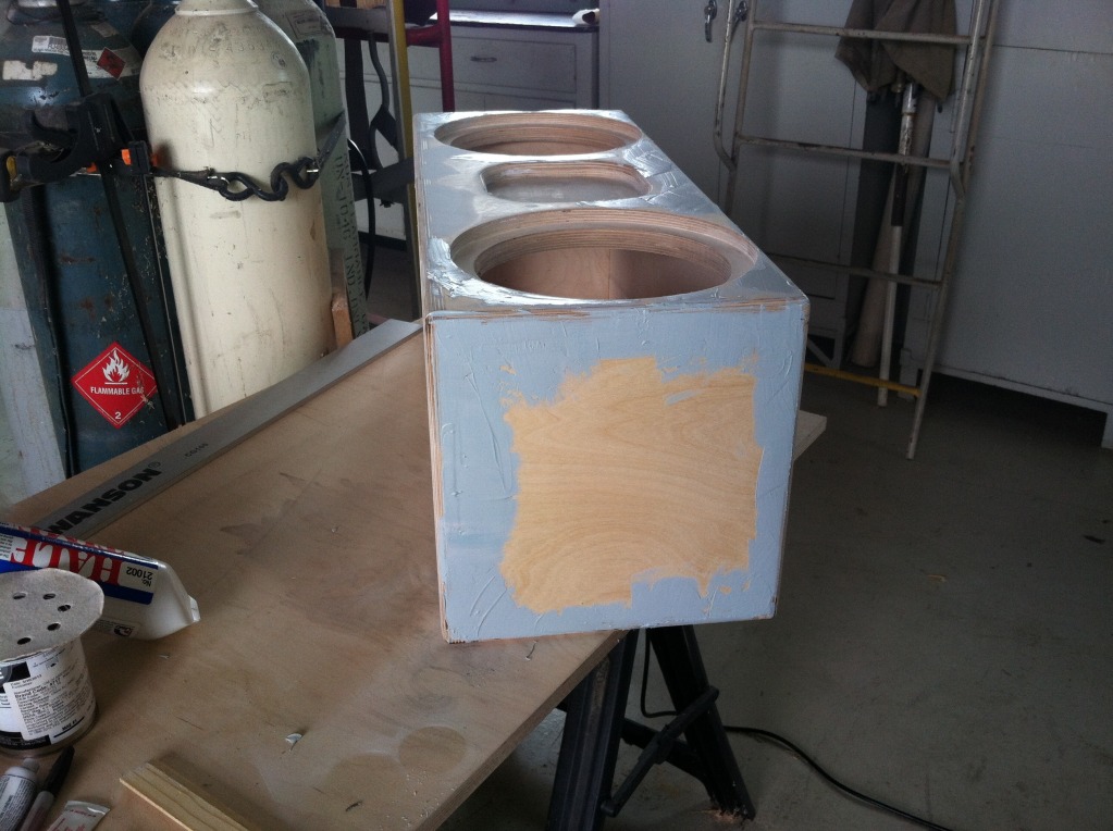 As for the enclosure I had the opportunity to put a little body filler on the screws over the last month. Got some put on and sanded down prior to today but I got all that finished today. Now it's time to apply the primer. Here's a few pics of the body filler process.