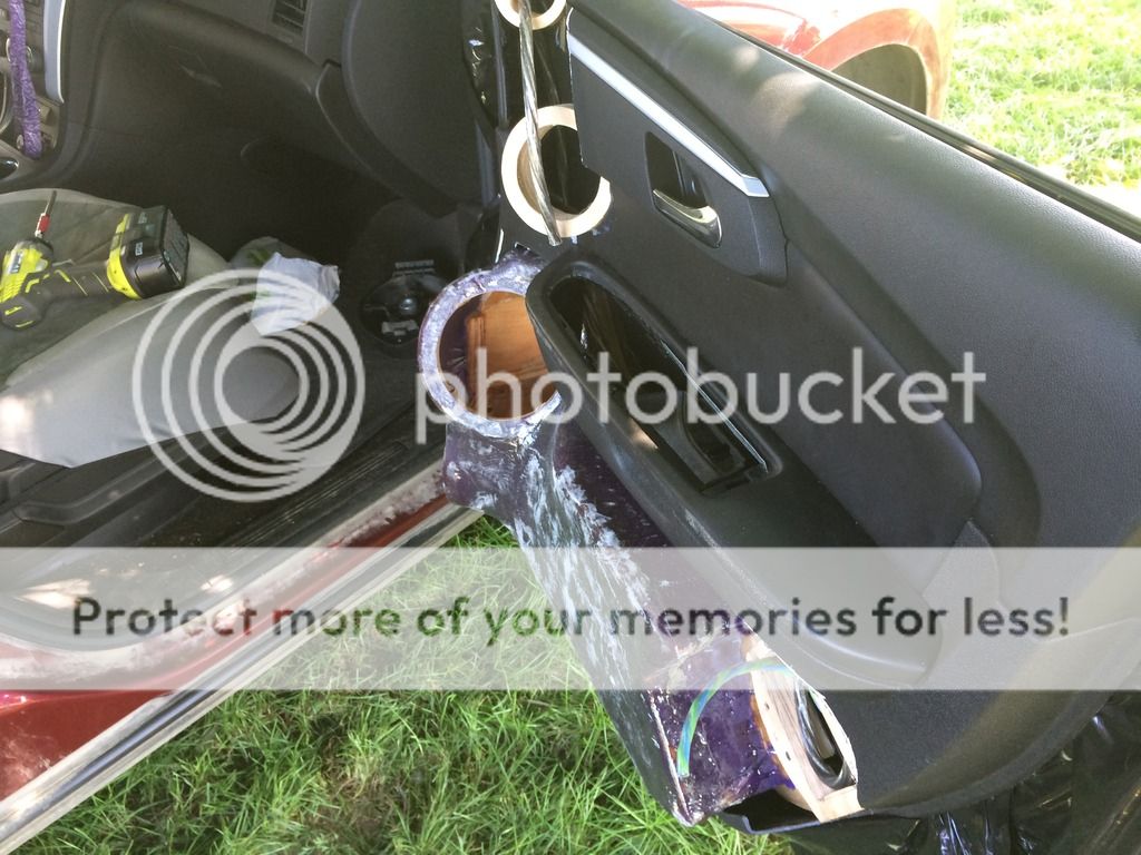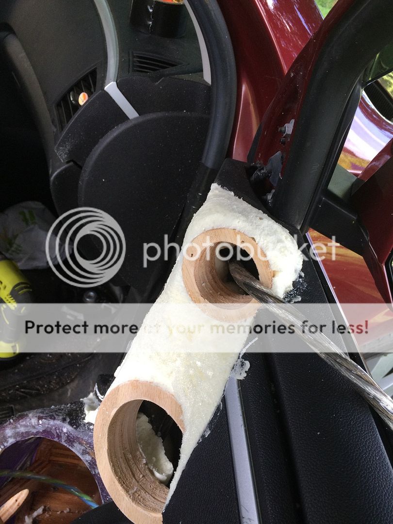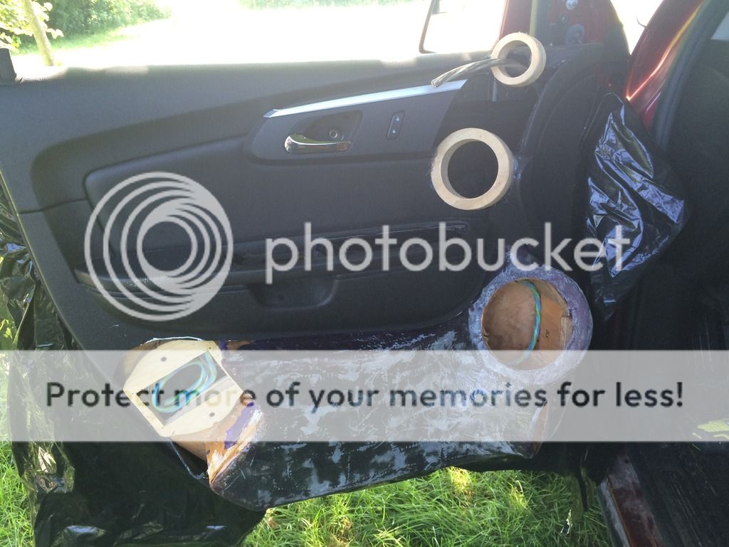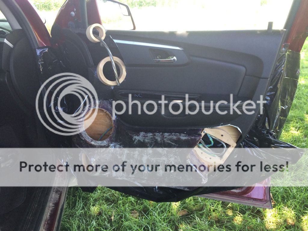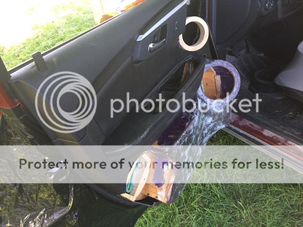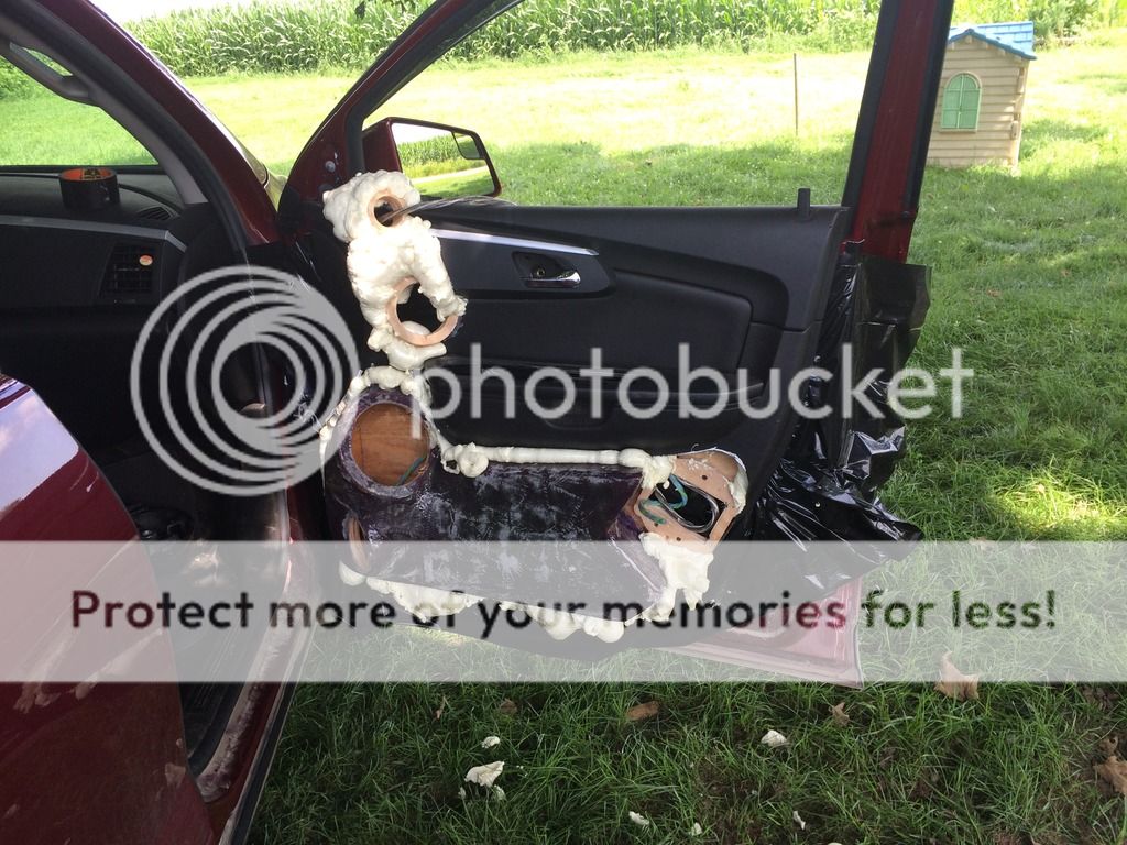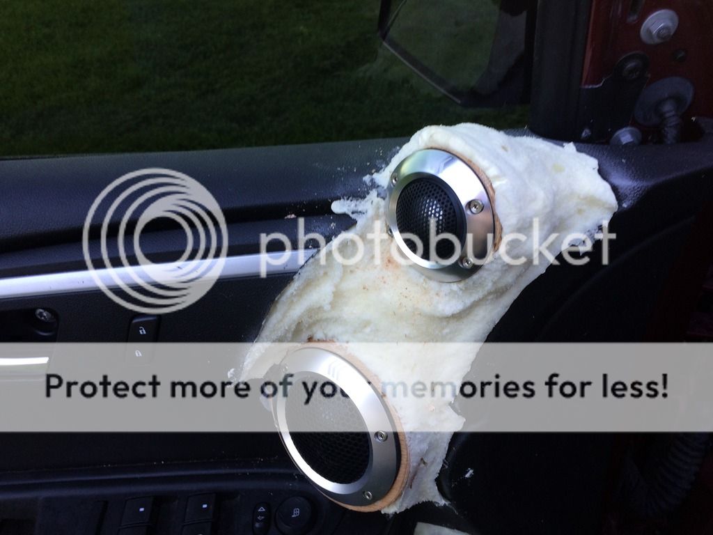 Well, I'm a little later than I planned to get the pics of the enclosures up but I have way more to post up than just the enclosures!!! I tore into it big time the last couple of days and got the enclosures in the door panels and all the foam work completed. Then, because the wife is a spoiled rotten brat, I threw the speakers in and hooked them up powered by the HU. Everything turned out pretty damn good. I still have a good bit of work to do to call the doors done, but I'm light years ahead of where I was a short time ago. Well, onto the pictures! To start off with, I applied CCF (closed cell foam) to the backs of the enclosures to keep any possibility of a rattle between the back of the wood enclosure and the sheet metal of the door panel to a minimum. http://i889.photobucket.com/albums/a...B.jpg~original Here's how the enclosures turned out. http://i889.photobucket.com/albums/a...E.jpg~original http://i889.photobucket.com/albums/a...7.jpg~original http://i889.photobucket.com/albums/a...8.jpg~original Here I'm running the speaker wire that will carry the signal from the crossover to the woofer. I also ran another wire with this one that carries the signal from the crossover to the midrange and tweeter. http://i889.photobucket.com/albums/a...8.jpg~original Here's what the door card looks like with the enclosure resting in it. http://i889.photobucket.com/albums/a...4.jpg~original Here are some shots of the doors with the door cards and enclosures in place before applying the foam. http://i889.photobucket.com/albums/a...D.jpg~original http://i889.photobucket.com/albums/a...D.jpg~original http://i889.photobucket.com/albums/a...0.jpg~original http://i889.photobucket.com/albums/a...7.jpg~original These two pictures show the doors after I've applied the foam. I used just regular old Great Stuff expanding foam in the can that any person can pick up from Walmart, Lowes, Home Depot, etc. I had originally planned on using crafting foam but when I tried to cut and apply it in the irregular locations of the top of the doors with the tweeter and midrange rings in the way I just couldn't get it to go without a LOT of trouble. I decided to just use the expanding foam to do the shaping around those speaker locations along with setting the enclosures in the door cards. Right now they look pretty bad, lol. http://i889.photobucket.com/albums/a...D.jpg~original http://i889.photobucket.com/albums/a...8.jpg~original And finally here's what they look like with a little work on shaping the foam and with the speakers installed. I only worked the foam enough to get the basic shape and to get everything out of the way for the speakers to mount and the door to close. There's still more foam that needs to be applied, shaped, and then finally the fiberglass can be applied over it. http://i889.photobucket.com/albums/a...E.jpg~original http://i889.photobucket.com/albums/a...D.jpg~original http://i889.photobucket.com/albums/a...7.jpg~original http://i889.photobucket.com/albums/a...1.jpg~original http://i889.photobucket.com/albums/a...6.jpg~original http://i889.photobucket.com/albums/a...0.jpg~original http://i889.photobucket.com/albums/a...F.jpg~original http://i889.photobucket.com/albums/a...9.jpg~original So, the speakers do sound fantastic even though I still need to do a lot of work to get everything dialed in and most of that work can't be performed until the false floor amp rack is installed so that the Harmony DSP and amp are there to run the speakers with. They have an amazingly natural sound and the staging and imaging are almost spot on. Still the most impressive part is the bass response with these enclosures, we'll barely even need the subs. |