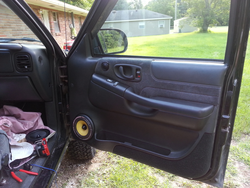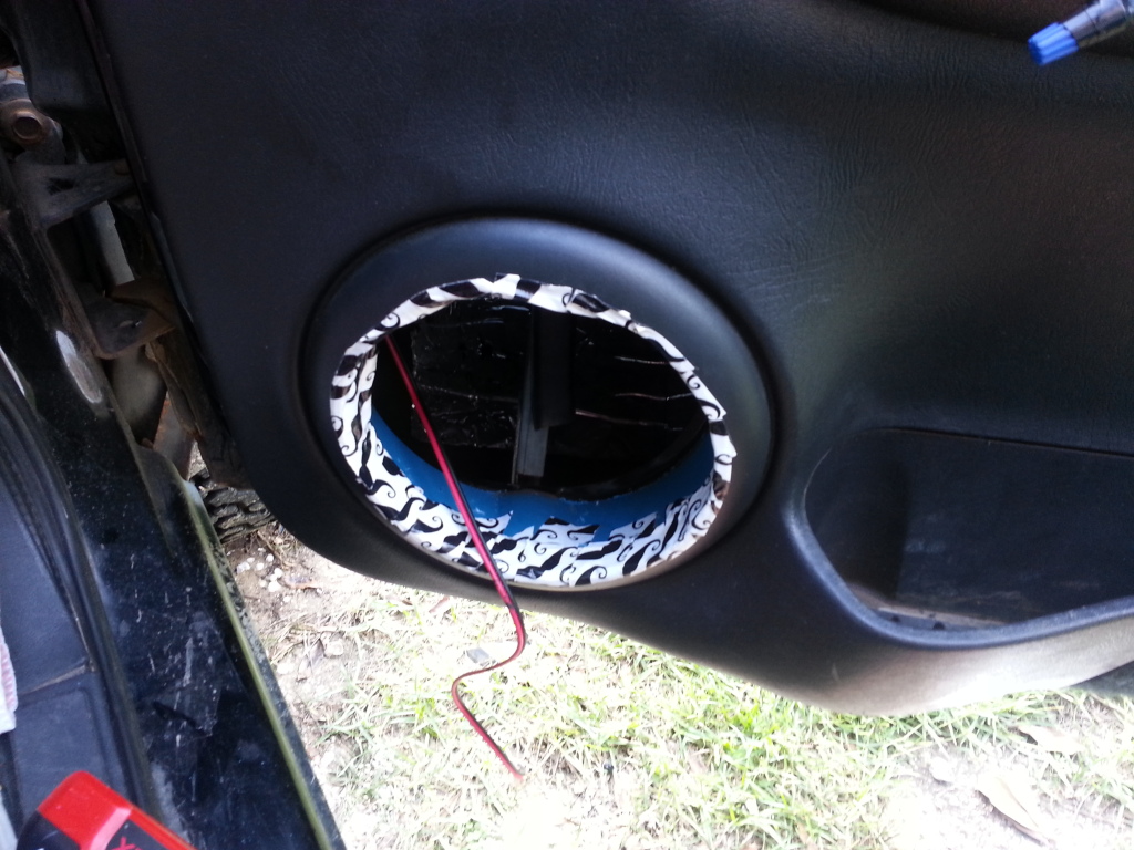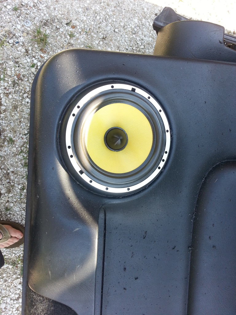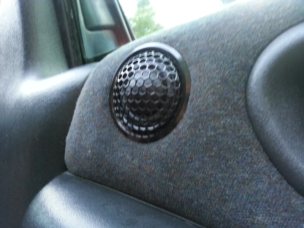 Passenger side done for the most part. Had to bore out the hole a little for these tweeters.