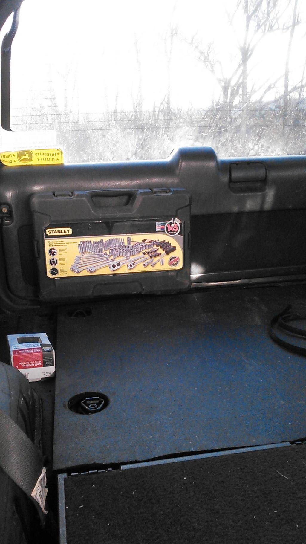 Put holes in my rear mat to allow for use of the tie downs. (I botched the first two pretty bad but oh well)