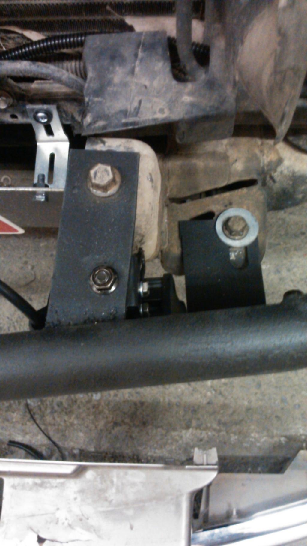 Here are the brackets we welded on, made of 3/16" steel, they bolt right up to the factory holes, the upper tabs also made a perfect place to mount my LED spot lights.