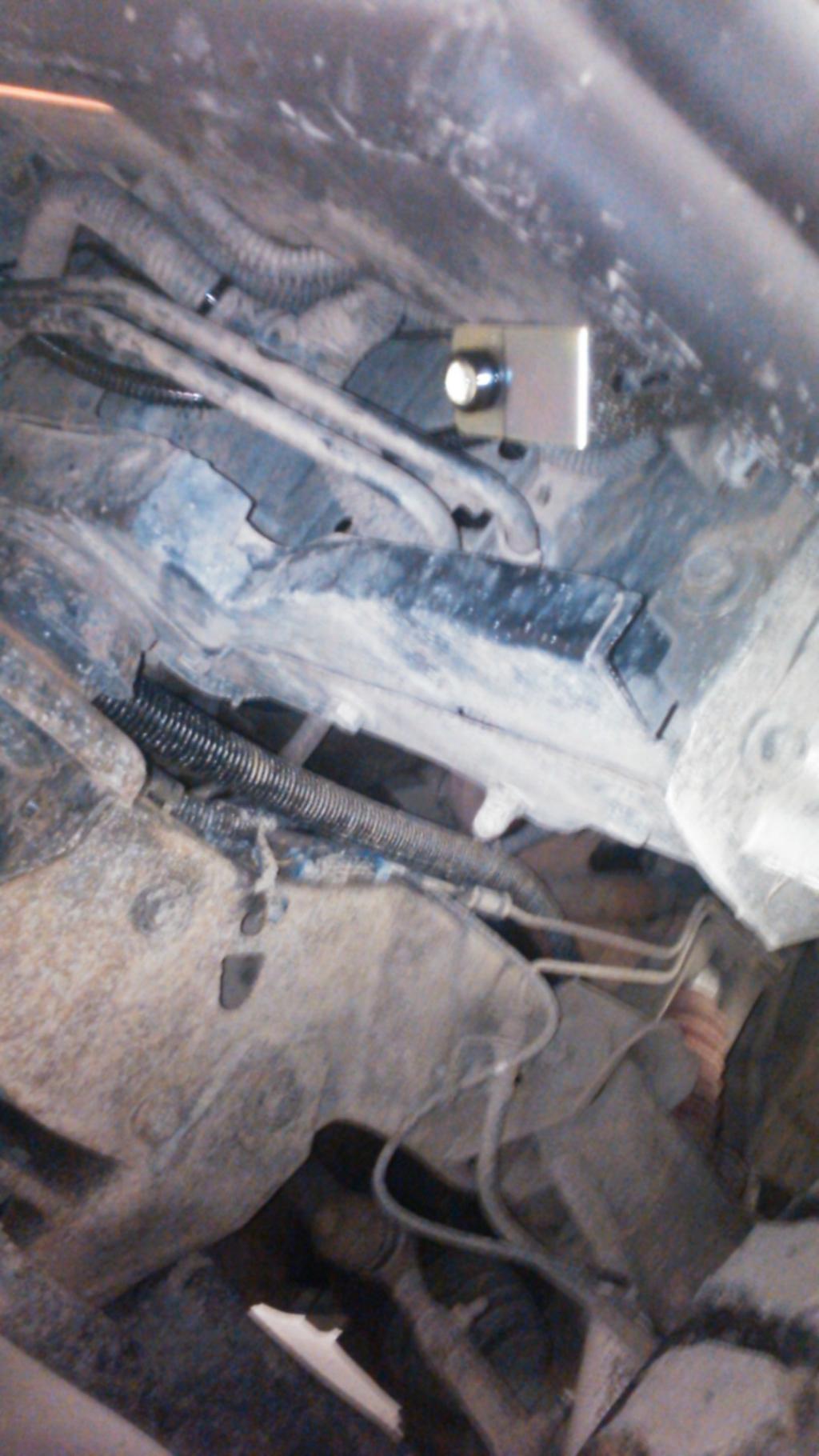 And I decided not to put the bumper back on just to take it off next weekend so I went ahead and fabbed up some brackets and a plate to cover a gap that exposes the oil filter.