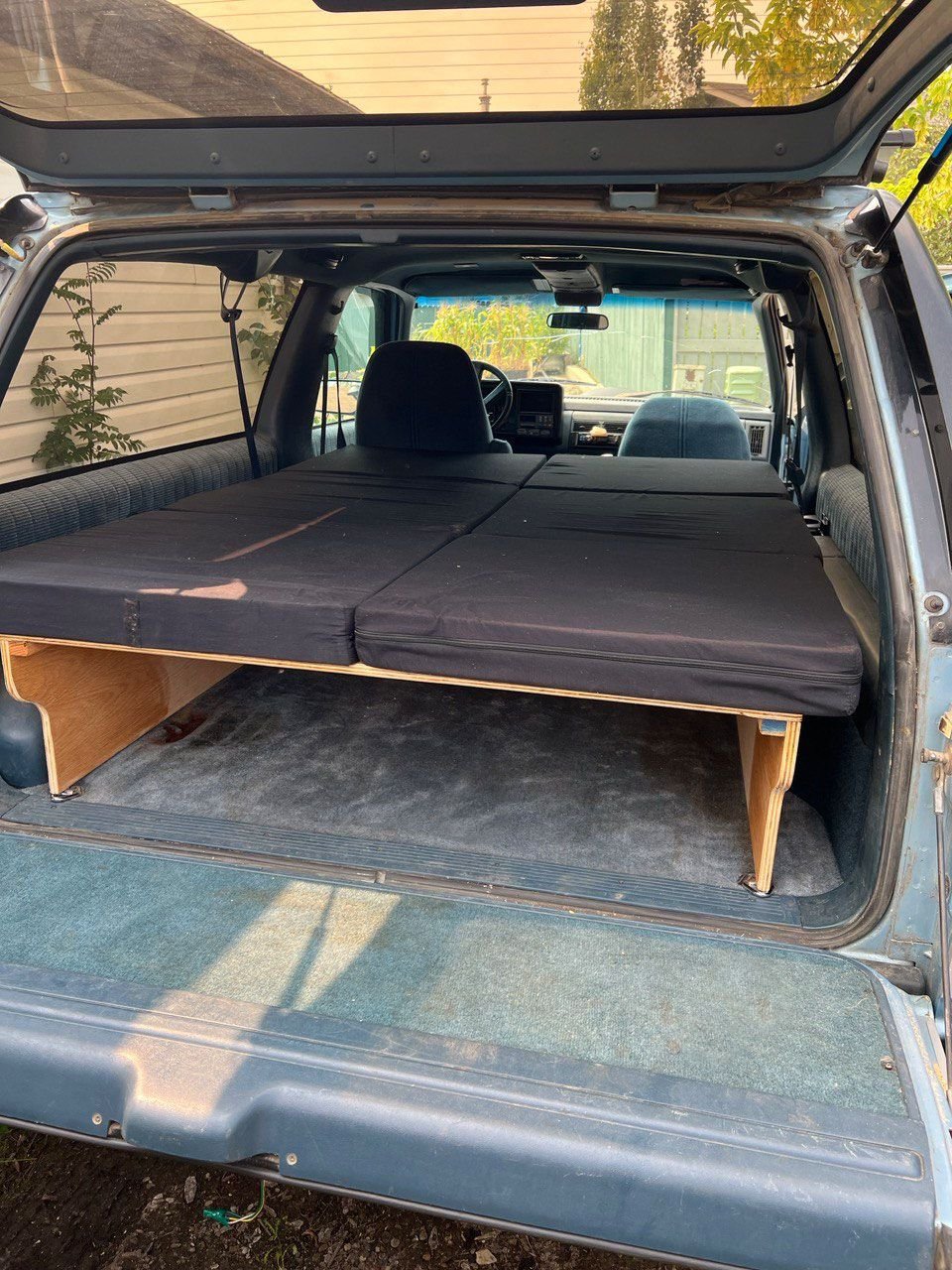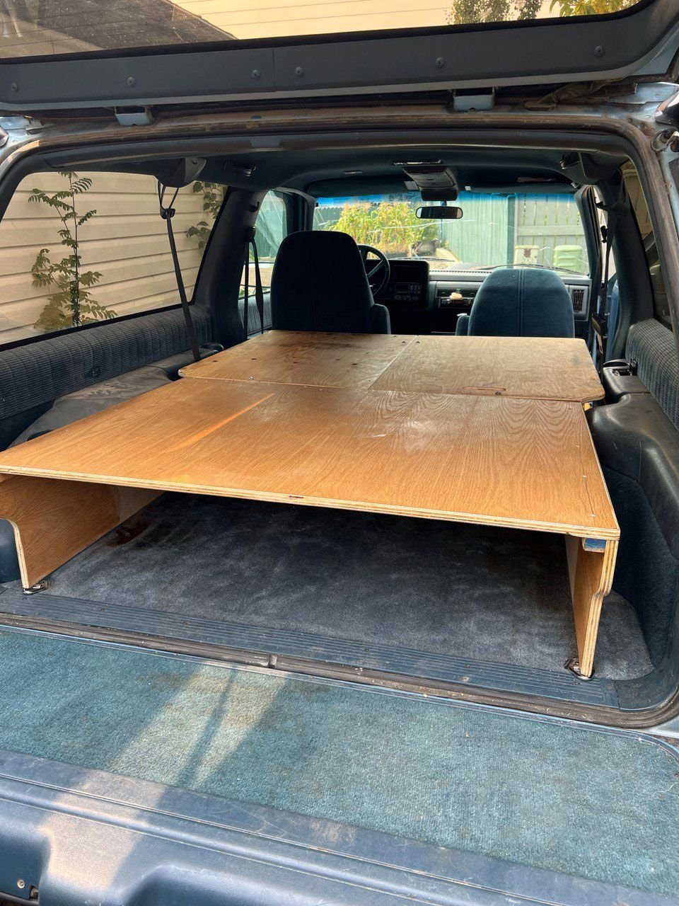 Taking it out fishing this weekend! Ready for bed Plywood platform All packed up and back seat back in upright position.