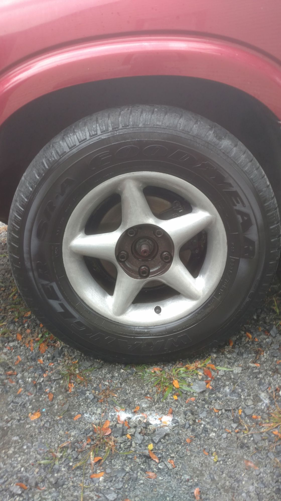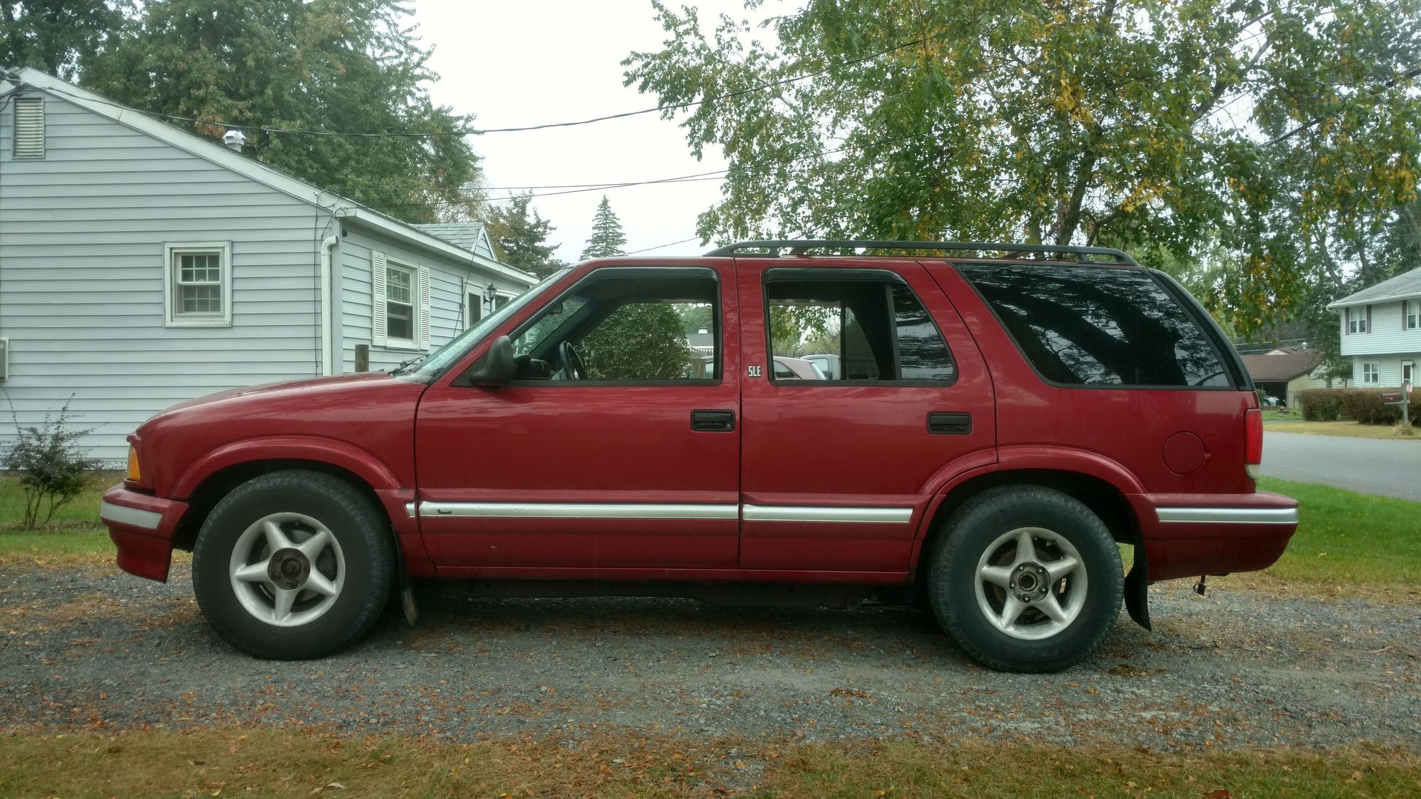 I think the wheels are factory gm of some sort...I'm thinking maybe a Pontiac Bonneville, grand prix, or grand am possibly? They were put on by the previous owner (before my buddy owned it) Got the other 2 wheels cleaned up today , and started polishing the paint with the buffer... What a difference it's making! Not perfect by any means-and I'm just doing a quick once over. But it's taking the heavy oxidation right off. Big difference from the left side to right in this picture https://cimg1.ibsrv.net/gimg/blazerf...4485f7a293.jpg Hood and fenders looking nice and shiny https://cimg1.ibsrv.net/gimg/blazerf...cbfc2ad41e.jpg Unfortunately buffing it made me notice all the bodywork that's been done to the nose, and all these chips down the passenger side..but at less than 500$ total invested for a reliable running driving 4x4 truck- I still have no complaints. https://cimg6.ibsrv.net/gimg/blazerf...24d5d8ced9.jpg Decided in definitely going to try and find an envoy front bumper for it...I'm going to call around to junkyards and parts suppliers tomorrow And wheel spacers for the back wheels has been added to my list for it too |