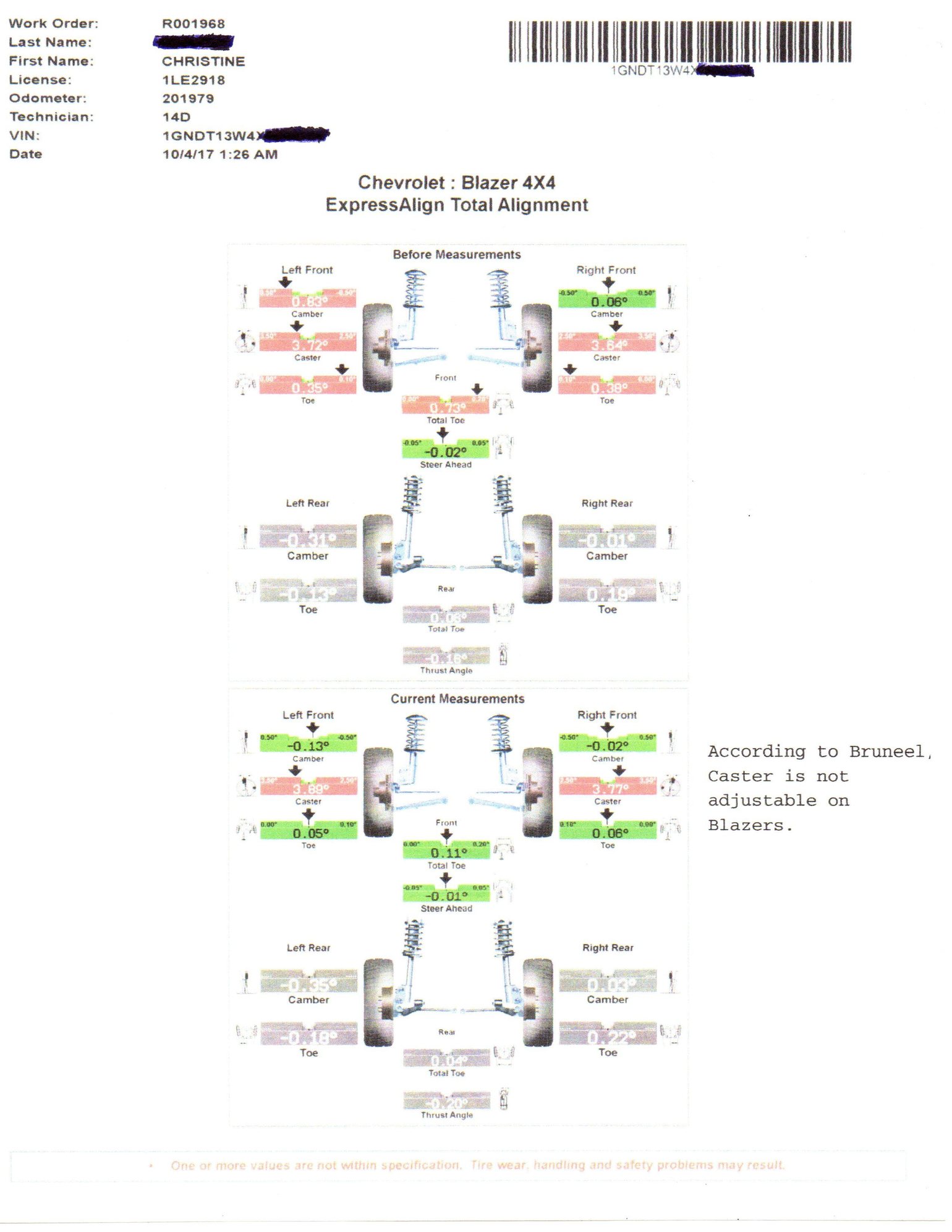Digging into my records I found another alignment done immediately after I did the suspension lift and found a note that they were not able to adjust the caster. I must have misinterpreted I was told; Instead of the caster not being adjustable, it was that for some reason (because of the lift?) it was not possible to adjust the caster.
