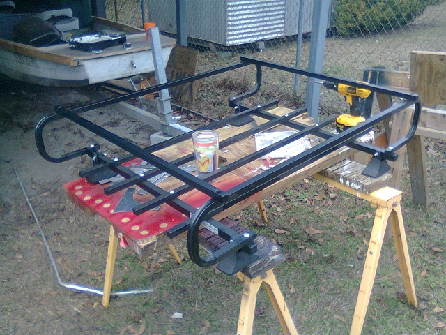 so i tore it apart, went and bought 24 feet of aluminim channel, did a reconfigure, re drilled everything, and put together a rack, the correct size. after enlarging it, i added additional front and rear vars, lower side bars, and side struts. i then removed the center potions of my existing rack, and roof lights, from the front cross bar, and put them on my new rack. then installed everything on the blazer. I'm pretty happy with how it turned out.