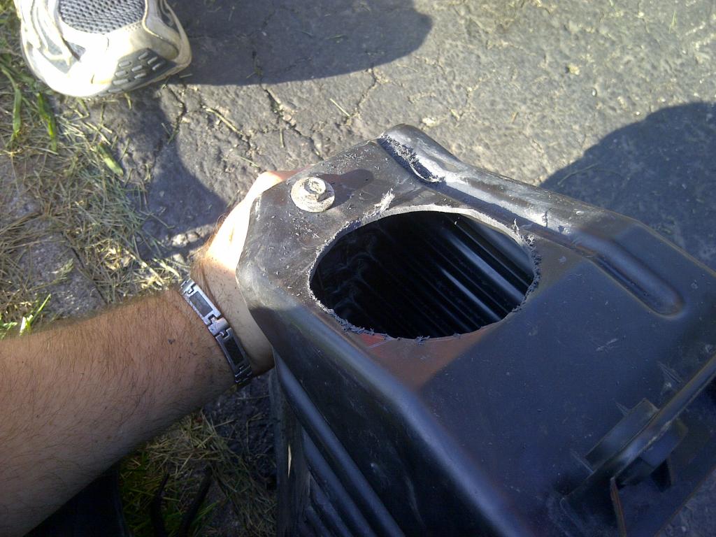 then we cut the hole bigger on the front of the stock air intake box