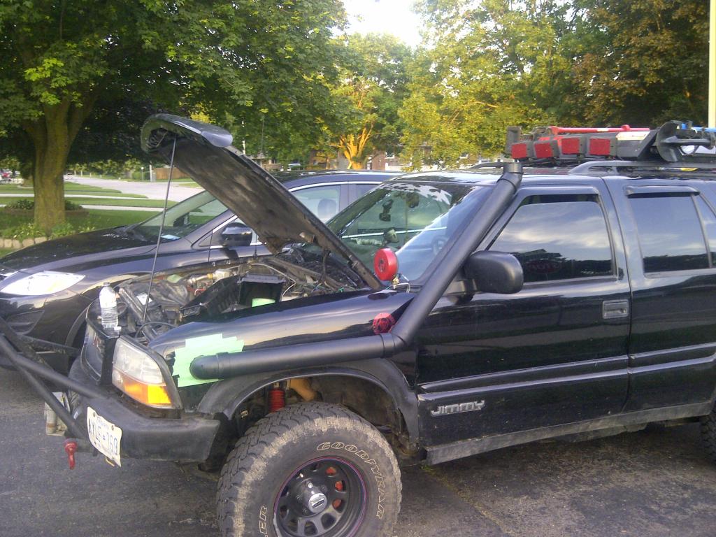 i have some vids i will post up after im done editing. in the mean time after all the rain we have been having and places been flooding out i decided to get busy and make a custom snorkle for the truck. its almost finished waiting on the head from ebay and got to make a custom bracket and gravel gaurd it.