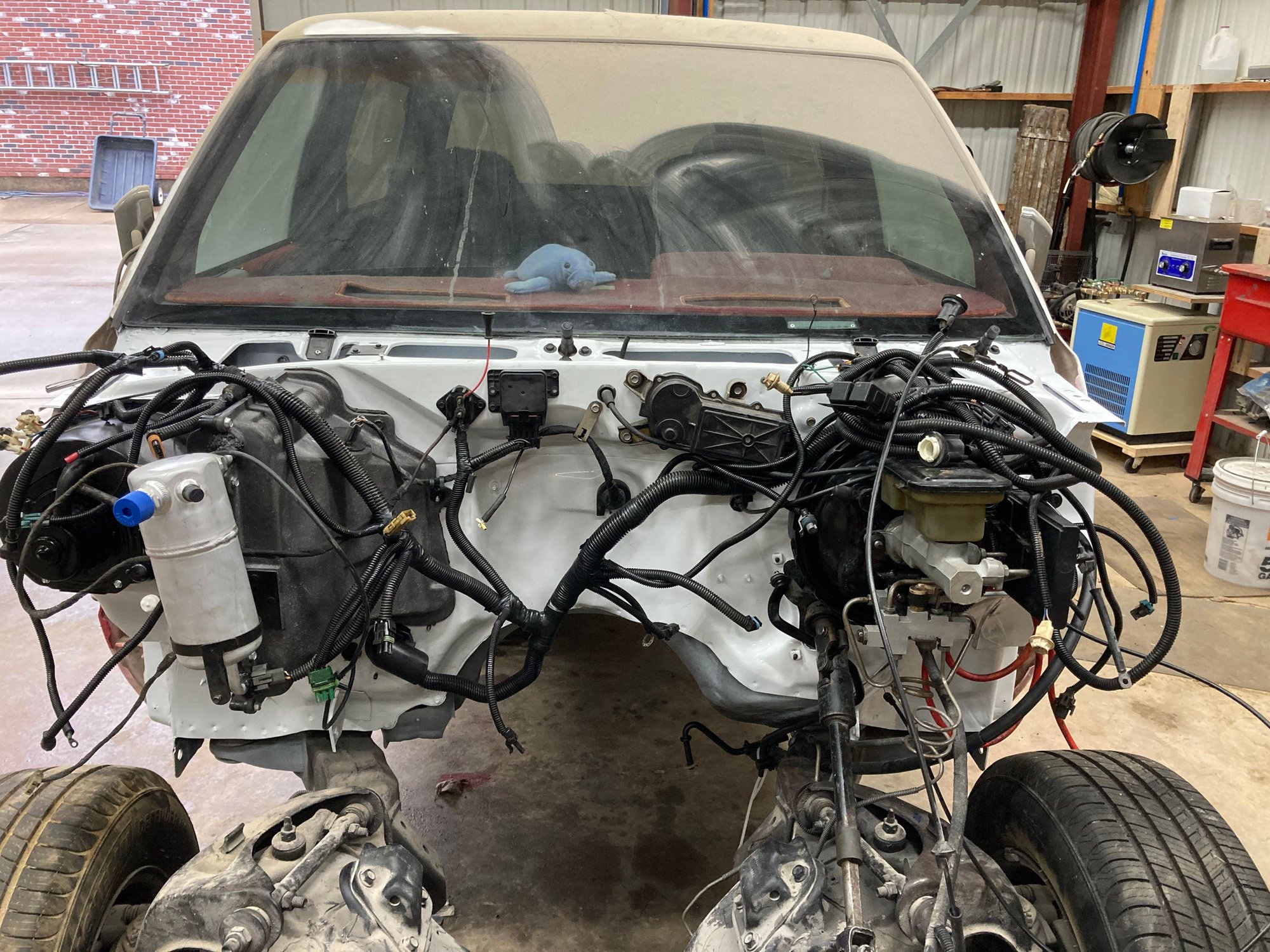 Today I finished reassembling the firewall on my 89 S15 Jimmy 2Dr, 2WD.. The front clip is removed and engine is out. The next step is to reinstall the engine.