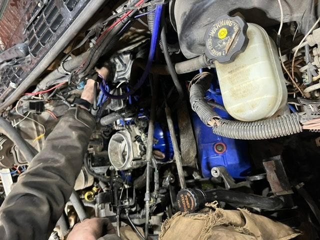 So few updates. My father in laws blazer has been sitting for over a year cause he took out the bottom end so he finally convinces me to swap the new motor in for him. Made out pretty good gave me a new snap on creeper and an engine stand and a set of Mac tools 6ton stands plus paying me. Old engine out New engine in Backed out and ready to go