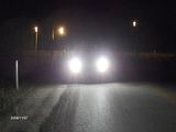 the last pic is of the HID kit (passenger side) compared to the 65W APC Ultra White (simulated) HID bulbs i had in there before (drivers side). it may not seem like a big difference in the pic, but i sure can tell the difference in person. i'm gonna have to go out tonight and get a pic to compare them to the APC bulbs i had in there.