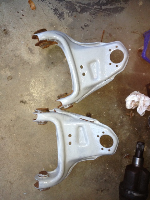 Battery tray and upper control arms cleaned up and partially primed