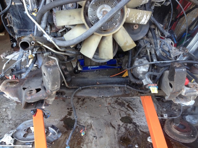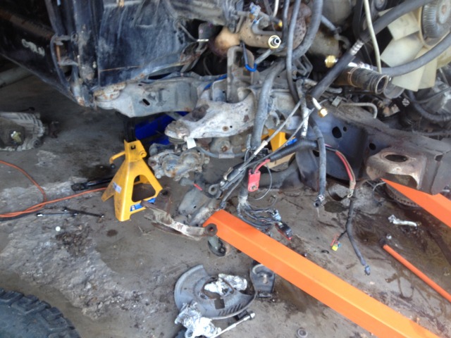 Then Paul came over and we removed the driveshaft, exhaust, trans cross member, CV's, and front diff.