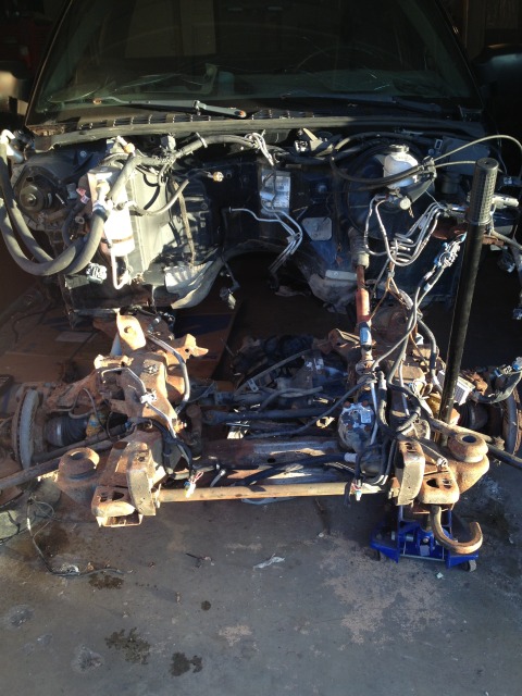 Interior is out except for head liner and dash, steering column is out, front diff & CV's are out.