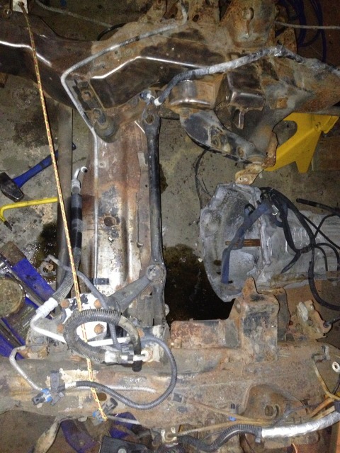 This past week I got some of the interior torn out and today blaz and I got the rest of the engine bay stripped down and dropped the transmission