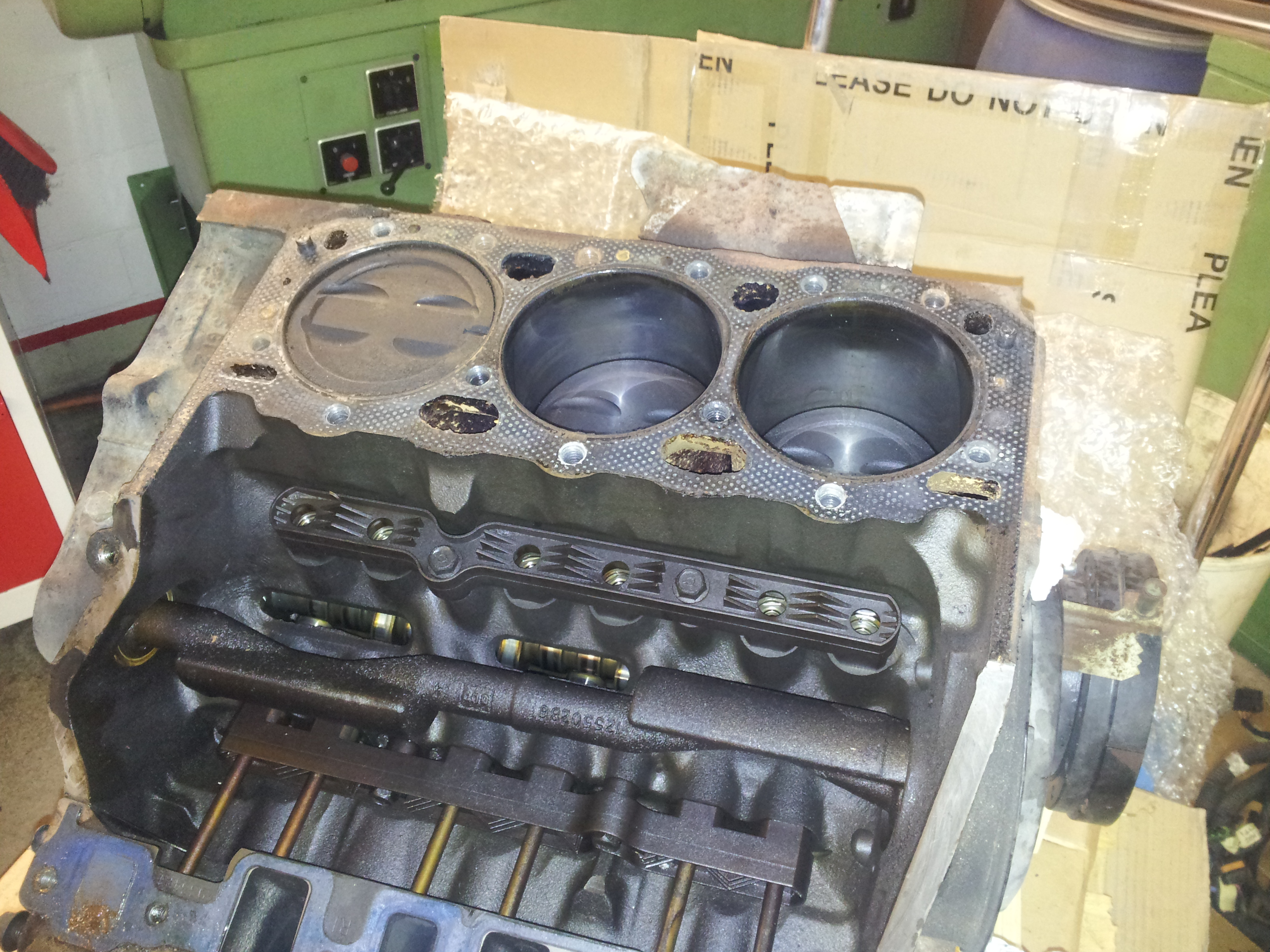 Starting with the teardown of the engine itself. Had the engine sit on a palette nice to move around using a fork lift. Lifted up onto a table and taken apart.
