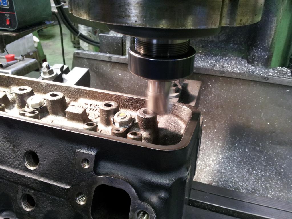 The OEM style rocker studs were pressed in ones. Pulled them with a sliding hammer, then machined the bosses for equal height, chamfered and cut 3/8" threads through. For the next step once the clearance of the valves to pistons is defined with the new camshaft we will have to cut the bosses further down by about 1/8" for proper geometry with the rocker arms. There is plenty of thread with these bosses (about 1"). Within the inlet channels I will just round the edges but not go the hassle to epoxy the holes. It's a street engine not a race engine.