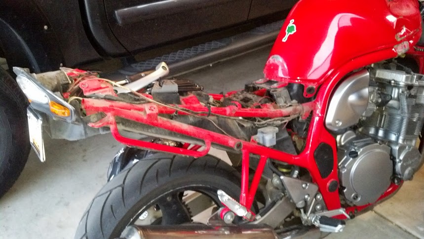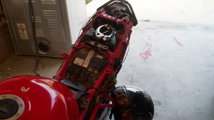 I was thinking doing the tank and plastics in black and keeping the frame red.
