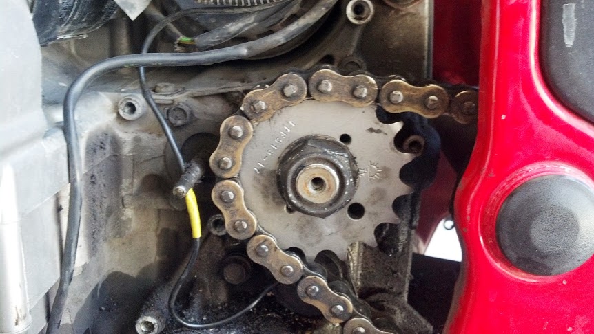 Did you change the chain also?One site about motorcycles real harp on this.Its makes sense use old stetch out chain it causes premature wear on the new sprockets.I know mine are extremely worn its on my to do list.Im going to upgrade to 1 tooth up from standard.Looks like your making good progress and its going to be nice when its finished.
