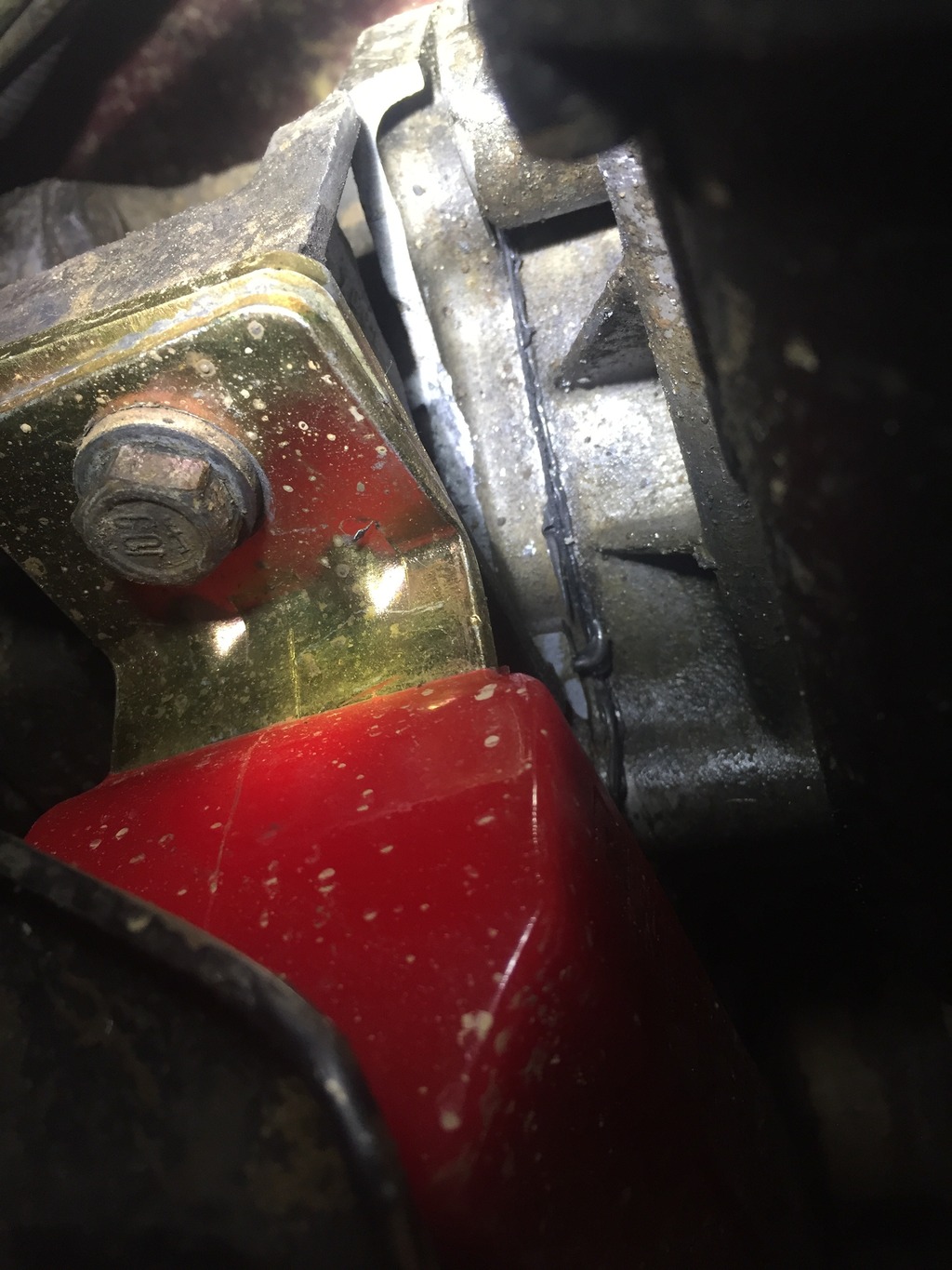 I replaced them with new poly mounts and everything went easy and well until it came time to put the bolts back into the trans mount (i had removed them before pushing the motor back) and that's when I found that my new poly trans mount was doing its job a little too well without any motor mounts holding everything in place lol!