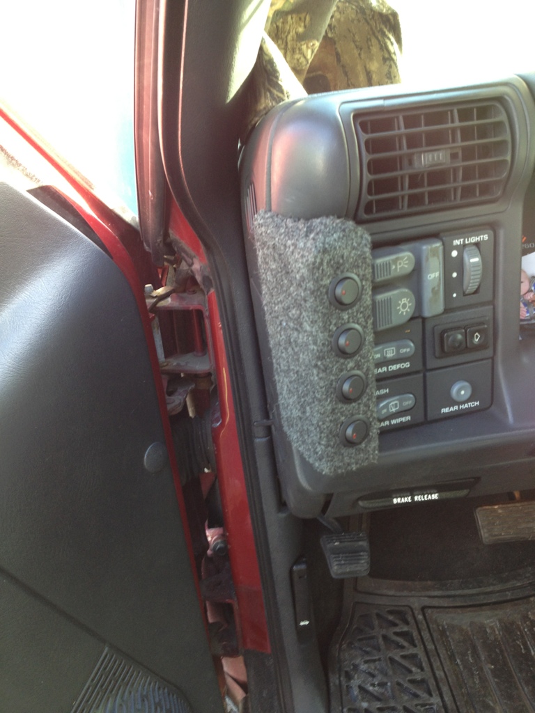 Then on the roof I ran the wires through a hole I drilled under the support leg for the factory roof rack so that no wires would be running through doors and looking out of place. I decided to use "2 flat" connectors on everything cause they serve their purpose and they were only $3 a piece at Advance Auto.