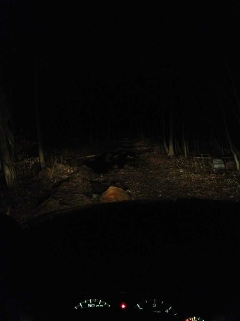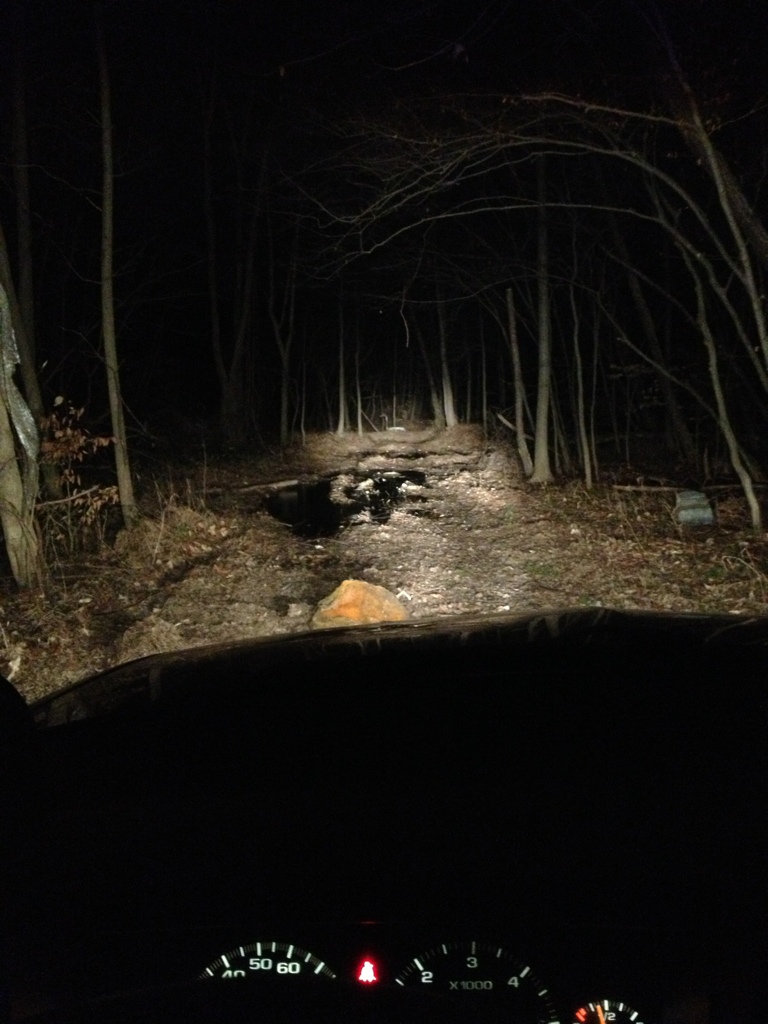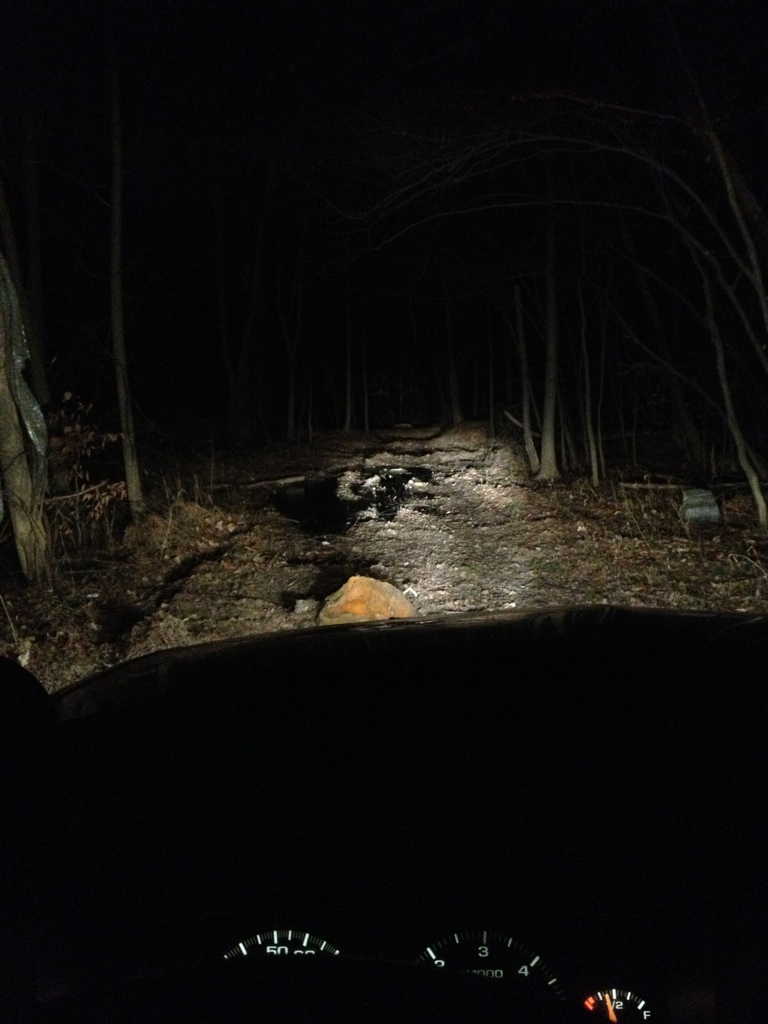 Well I came back to work late last night to drop off my work truck and decided since it was dark out I would drive down in the woods and see how well my new lighting setup worked. Heres a couple pics.