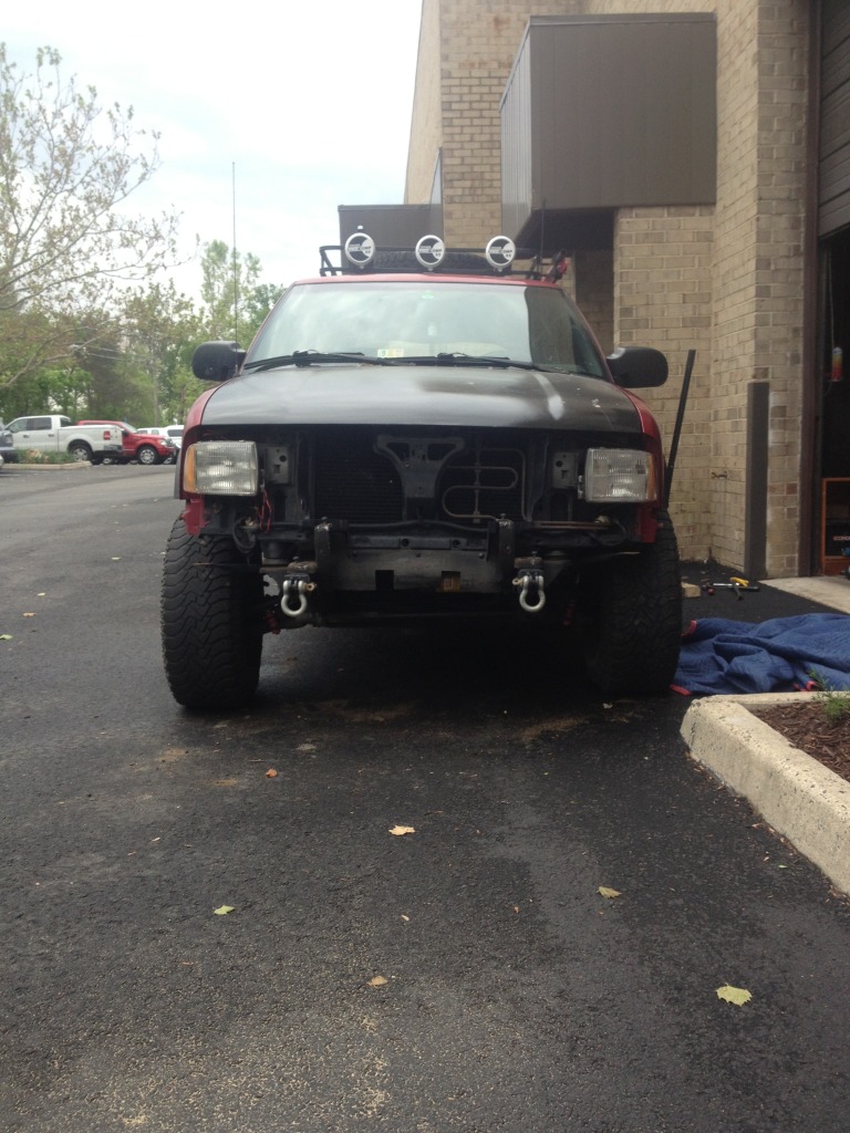 Now I need some bigger tires! I still need to adjust/center the rear bumper and I have a bit of binding in the steering that I need to get sorted out a bit but other than that its good to go. All together it took me about 7 hours to complete so not to bad I don't think. I didn't have to deal with the fan shroud since I have e-fans so that saved some time and I just bent the rear bumper a bit rather than cutting it like the directions say to. I really don't see any need at all to cut it though. I'm happy with it and now onto the next mod