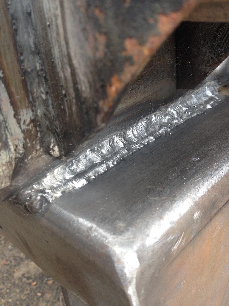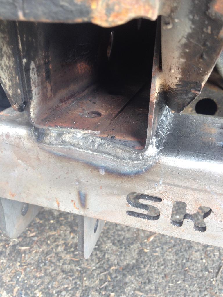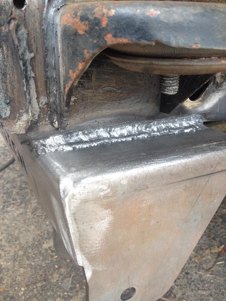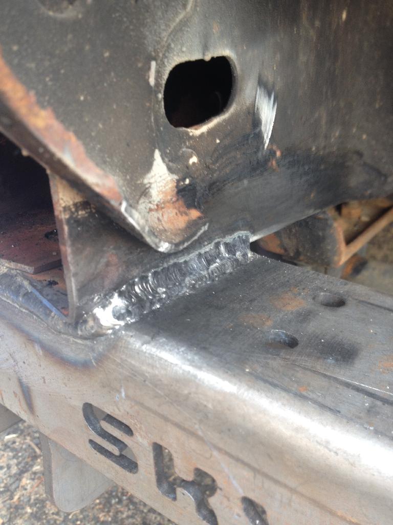Decided I may as well go ahead and weld up my front hanger today since I feel confident that it is in a good place and will work out fine. I did everything with my Hobart 140 and flux for the penetration factor. Not the prettiest welds but I am certain that they won't be coming loose anytime ever lol. I did a root pass and then a high and low overlap pass on all of them and then I filled in all the space on the front and put a big fat weld across there as well.