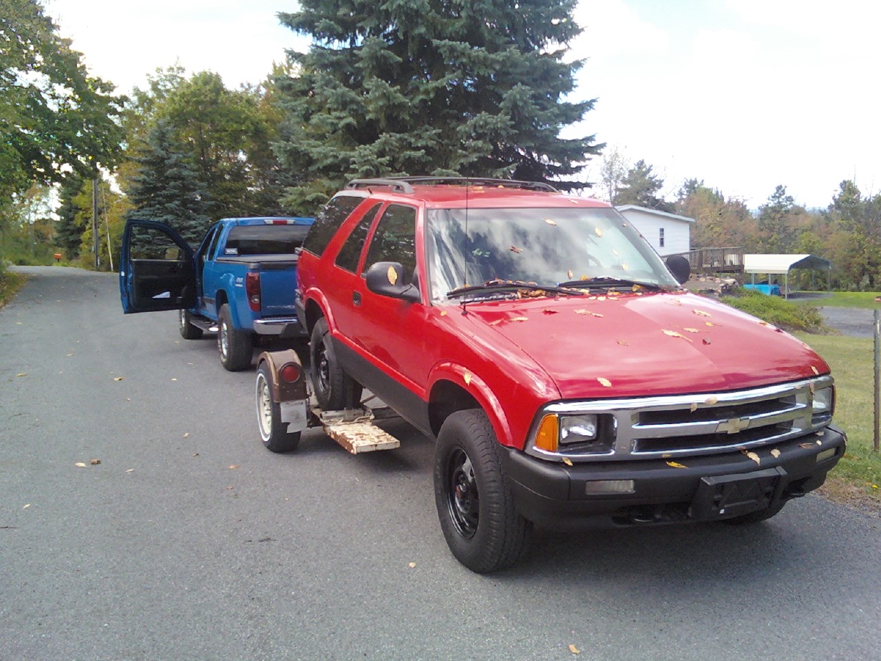 not sure about the vac line. i was talking to a guy at napa today and he said to unplug the tcm on the passenger side kick panel for a hour or so and see if that will work. so i am in a process of doing that. I also primed the front bumper and tow hooks today too and just waiting on the second coat to dry so i can put on the bed liner spray on them. also i took the tire swing arm off and i got the swing pin out and have some oil on the other one to try to get that out also today. I also found a sweet deal on craigslist on already powered coated rims i will should you the stock pics of them before they were painted. I just need to make sure that they will fit on my blazer. i offered him 50 bucks for all 4 plus around a 2 hour drive time to get them.