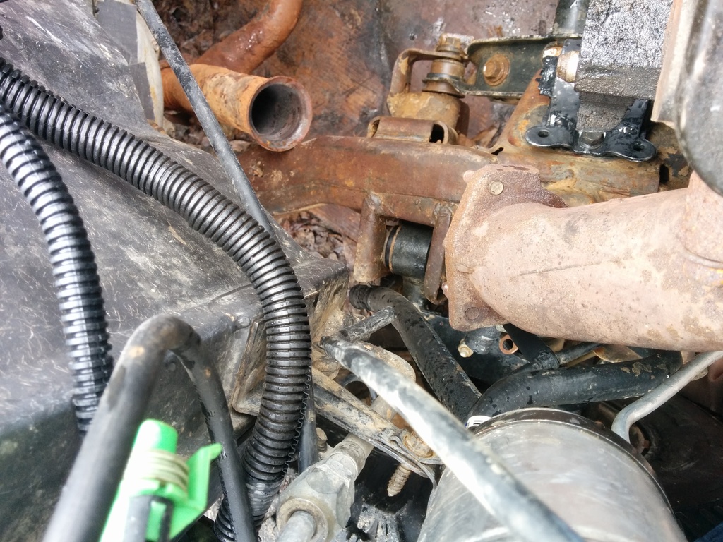 Did the easiest v6 to v8 conversion step there is: Remove the heater hose fitting from the v8 with a 33mm socket, place it in the nearest scrap pile. Use the correct tap to chase the threads in the intake. (If you have worked on a few 96-99 vortec v6/v8 you have probably had to ez out the old pewter heater hose nipple, I sure as hell have) Once the threads are clean and happy, use compressed air and blow all of that metal into the engine like my dumbass did. (she will earn her flush) Pull the stock 4.3 heater hose fitting, use a wire wheel on your bench grinder or if you are poor like me, use a metal brush and clean them threads! Dab some permatex thread sealant, install to HAND ft lbs and celebrate.