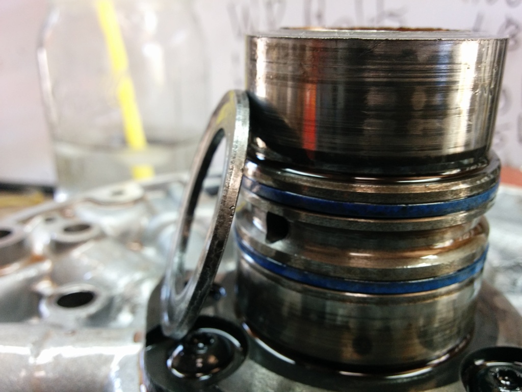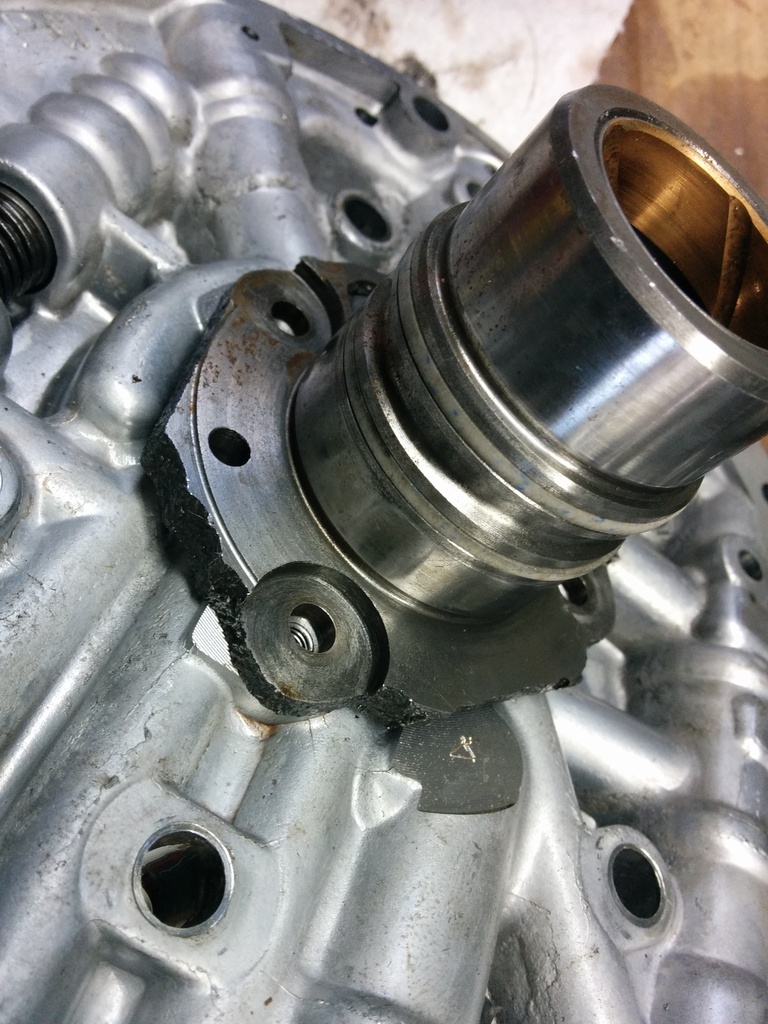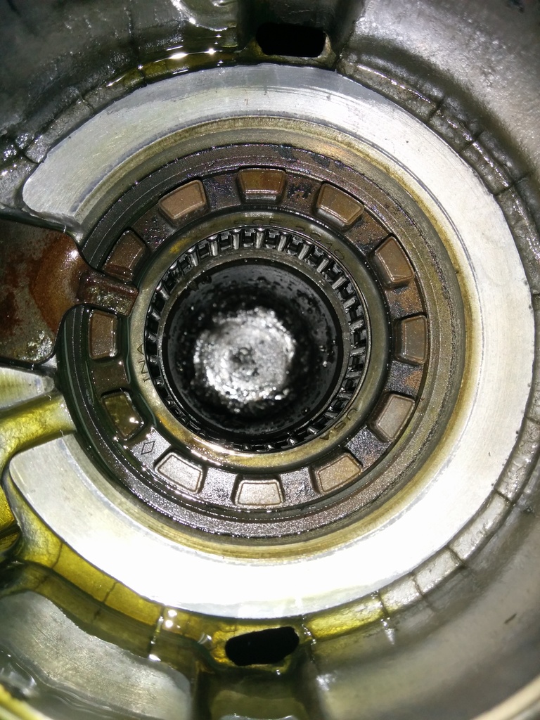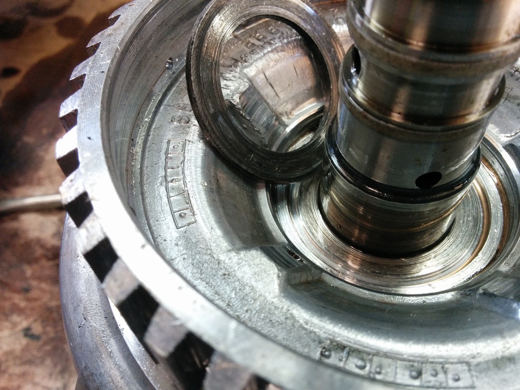 Now why the hell was the reverse drum snap ring off? Well it appears the last jackass to work on this transmission installed the input drum thrust bearing backwards. We all make mistakes. This ruined the reverse input drum, input drum, selective thrust washer, thrust bearing, reverse input drum clutches, entire pump, stator support. Jesus Christ.