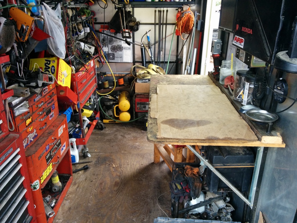 First thing I did was clear out a space on my bench. I use cardboard from a box to help minimize the mess fluid likes to make.