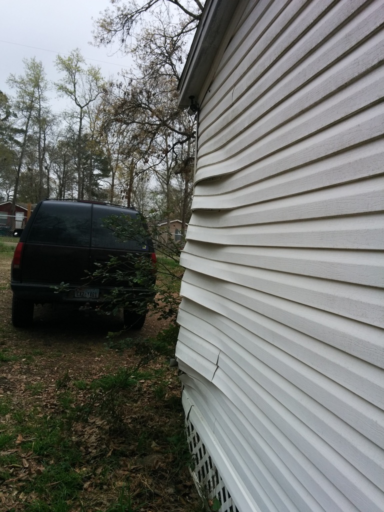 So I spent the rest of that day repairing my house, which btw **** VINYL SIDING. She split the 2 stacked 2x6 beams that make up the corner post of the house, wiped out an electrical junction, backer board, half our rose bush, and the vinyl siding corner piece. The tahoe has no damage besides rose bush goo on the impact strip. Ooh and I got it all on surveillance cameras.