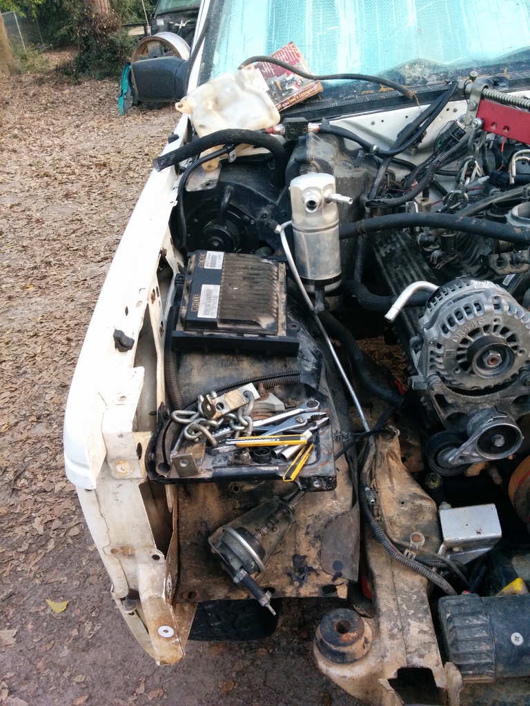 I'm using the 2wd adapter plates with 2.8 mounts, I don't want my engine jammed into the passenger side nor do I intend on touching my HVAC box or body. I'm focusing my mangling almost exclusively on the manifolds. I need to buy a proper o2 removal tool, my performance tool one is absolute garbage. All it does is spread out and slip over to the next set of splines.