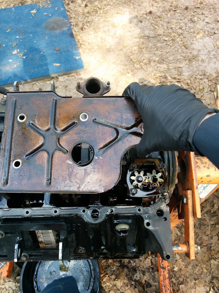 To get into the front pump, use a 13mm impact and pull the 5 bolts off. the halves will separate and you can get inside where the magic happens. Or in my case, the carnage: