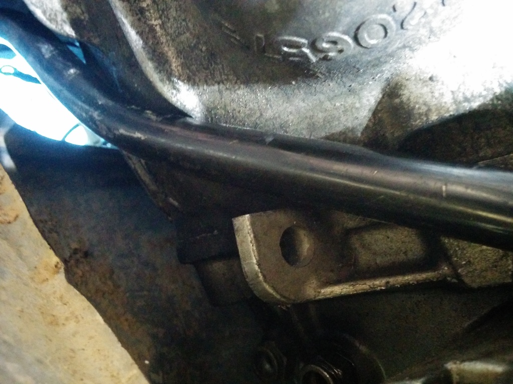 Ran into a BUNCH of little dramas but nothing a little yelling and a grinder won't solve. Firstly the suburban trans has these little "ears" on the left and right sides of the case. Had to grind off the one on the drivers side because it was interfering with my fancy tcase support brace that goes from just above the encoder motor to the bellhousing upper mount. Heres a pic of the passenger side thats going to get ground off as well. (It hits my passenger brace)