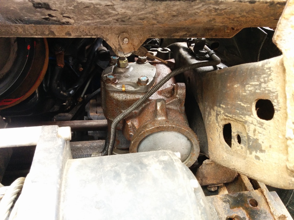 So far I have the clutch and low side pressure switch wired up. I have not connected the high side switch or the pcm output. I don't have any $$ for ac right now but I had a working ac system before the swap. I installed the 96 Jimmy's ac lines that go from the compressor to the condenser and to the accumulator. They are broken at the compressor mount so I just put some new seals on em and let it rip. The system wouldn't hold a vacuum, the compressor I had installed was leaking like mad out of the seals. I removed, poured out it's oil into the other compressor (I refuse to buy oil for a junkyard ac fix) and spiked it like a touchdown. I then apologized to the high side switch lurking in the rear and removed that for spare parts.