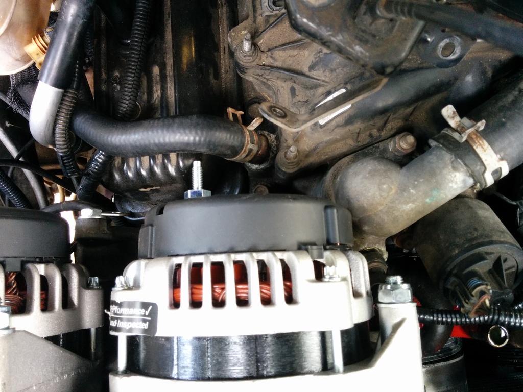 The kit comes with heater hose because you MUST remove your heater hose hardline from the vehicle. There is simply no clearance anymore with the alternator pivoted up. It will need to be pulled to remove the left hand thermostat housing bolt which sucks.