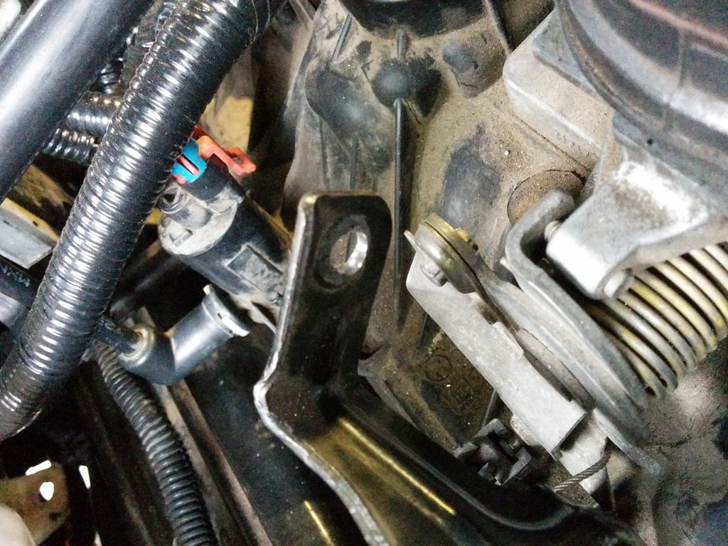 Once everythings bolted up I noticed that the cruise control cable interferes with the alternator. I used 4 stainless 1mm ish thick washers to raise the bracket up, then use a rat tail file and file down and to the left the throttle body bolt hole 3-5mm.