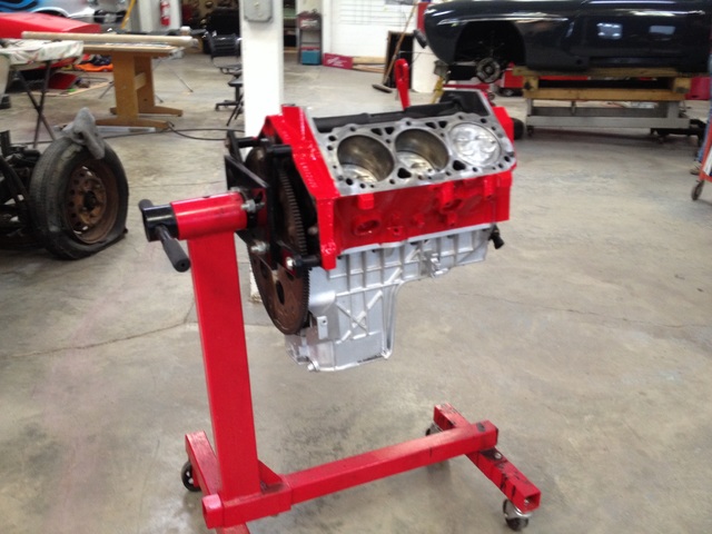 finally got the block painted! used ppg epoxy sealer(dp90lv) and PPG single stage(DCC) paint. the color is GM's Race Red accent color.