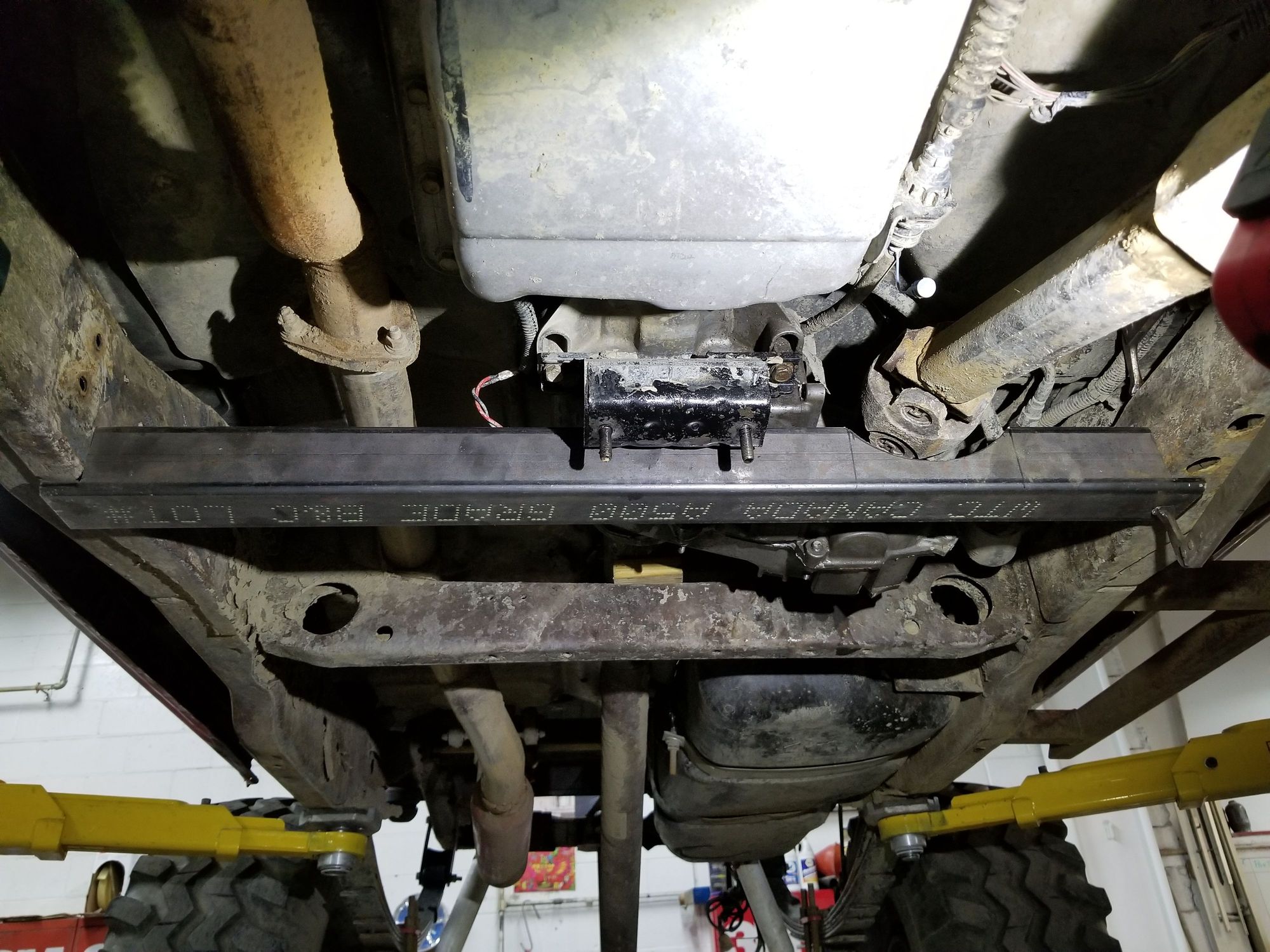 Here's a pic of the broken old one https://cimg8.ibsrv.net/gimg/blazerf...311819d806.jpg Got the square tube cut to fit between the framerails, and notched around the front drive shaft CV joint https://cimg7.ibsrv.net/gimg/blazerf...7cff0622de.jpg Mocked up https://cimg6.ibsrv.net/gimg/blazerf...a702ae14e5.jpg Now I have to make the cradle for the tranny mount, and weld the plate that will actually mount the crossmember to the frame. Other things high on my priority list: -Replace the headlight switch. It got soaked with mud and is sticking on and killing the battery - replace o-rings that seal fuel lines to injectors. I'm pretty sure I'm missing one pair and that is the cause of my fuel pressure leakdown. I have also decided to upgrade to a d60/corporate 14 bolt full floating axle combo out of a cucv. My d44s are too narrow and I can't turn fully because my tires rub the leafs. Besides, by the time I re-gear, put a real rear locker in, and replace my pinion yokes, it will cost the same or more as it will to buy the better axles(which already come with 4.56 gears and a rear locker.) This will probably happen come spring time. |