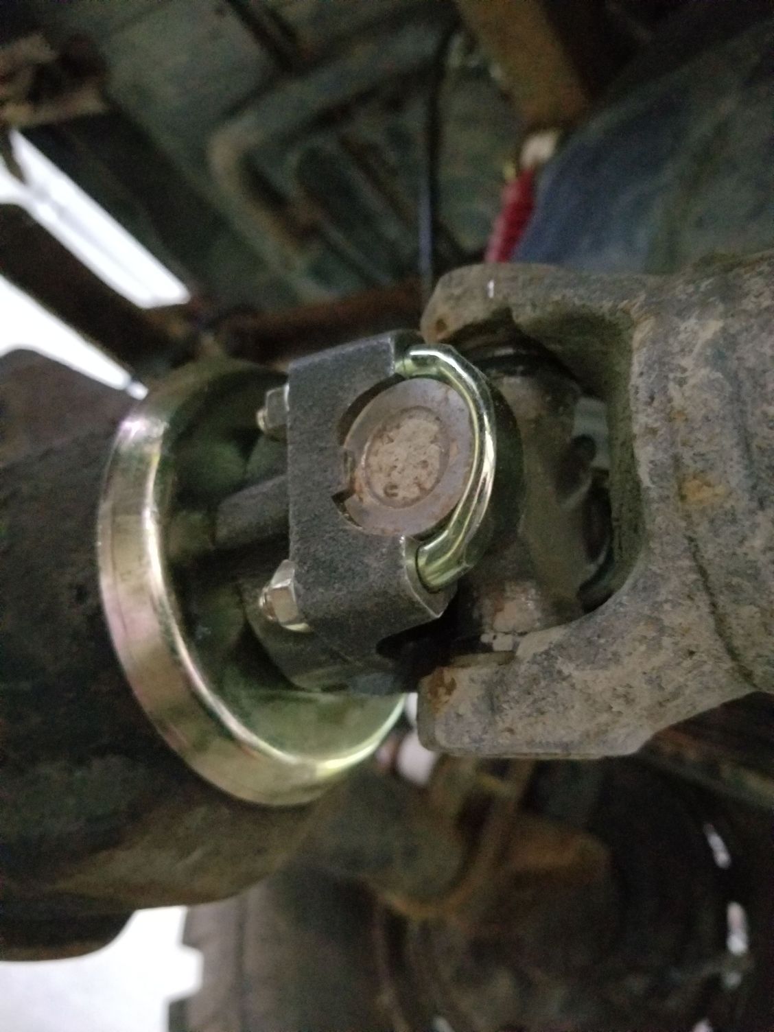 Got my ubolt style rear pinion yoke on today. Changing it was a breeze, I was surprised it went so smooth. The thing seems way beefier than stock, and the u bolts are much easier to install than the strap style clamps.