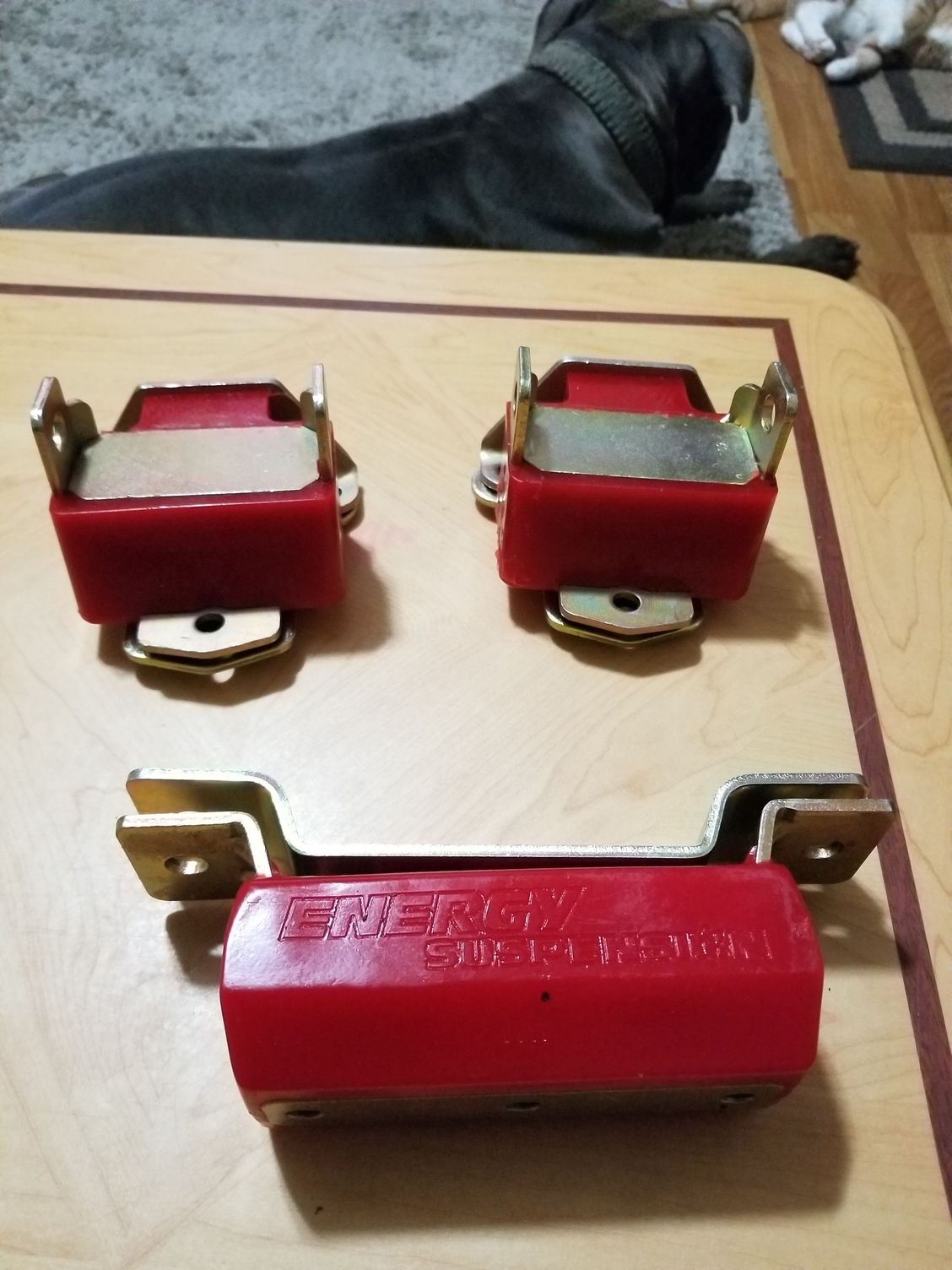 Did both new rear wheel cylinders and brake shoes and springs in the field and got it going again.... only to have both engine mounts and tranny mount let loose on me... right around this time: https://cimg8.ibsrv.net/gimg/blazerf...b92712d53f.jpg after some research I found out the factory style mounts are problematic for everyone running more power or bigger tires/lockers on s-series trucks. Solutions were chaining the factory mounts so they couldn't pull apart, or running polyurethane mounts. I chose to get these mounts from energy suspensions because they have internal hoops to protect the mounts from pulling apart, so they're even more reliable than regular poly mounts, and I shouldn't have to worry about chaining them.https://cimg9.ibsrv.net/gimg/blazerf...36d6b6ee19.jpg Also, here's one more picture from the event. My blazer, the once-was Minnie Jimmy, and the sonoma which my girl has claimed to be her off-road toy lol. https://cimg5.ibsrv.net/gimg/blazerf...3e1b7d7519.jpg |
