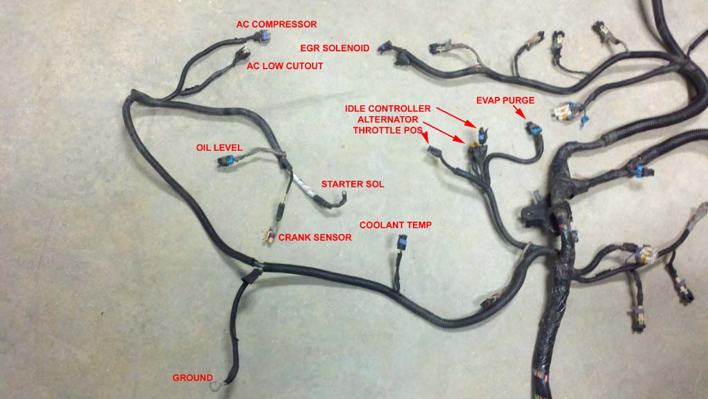 i know most connectors will only fit one plug. i know on the rear of the engine there is a MAP and a oil sending unit and i believe and they look the same but have a diffrent molding to make them only plug into one plug. but ill look and see if i have pictures for it when i get home from school today (posting this in my GED class on school computers) but ill look for you and see if i do for ya.